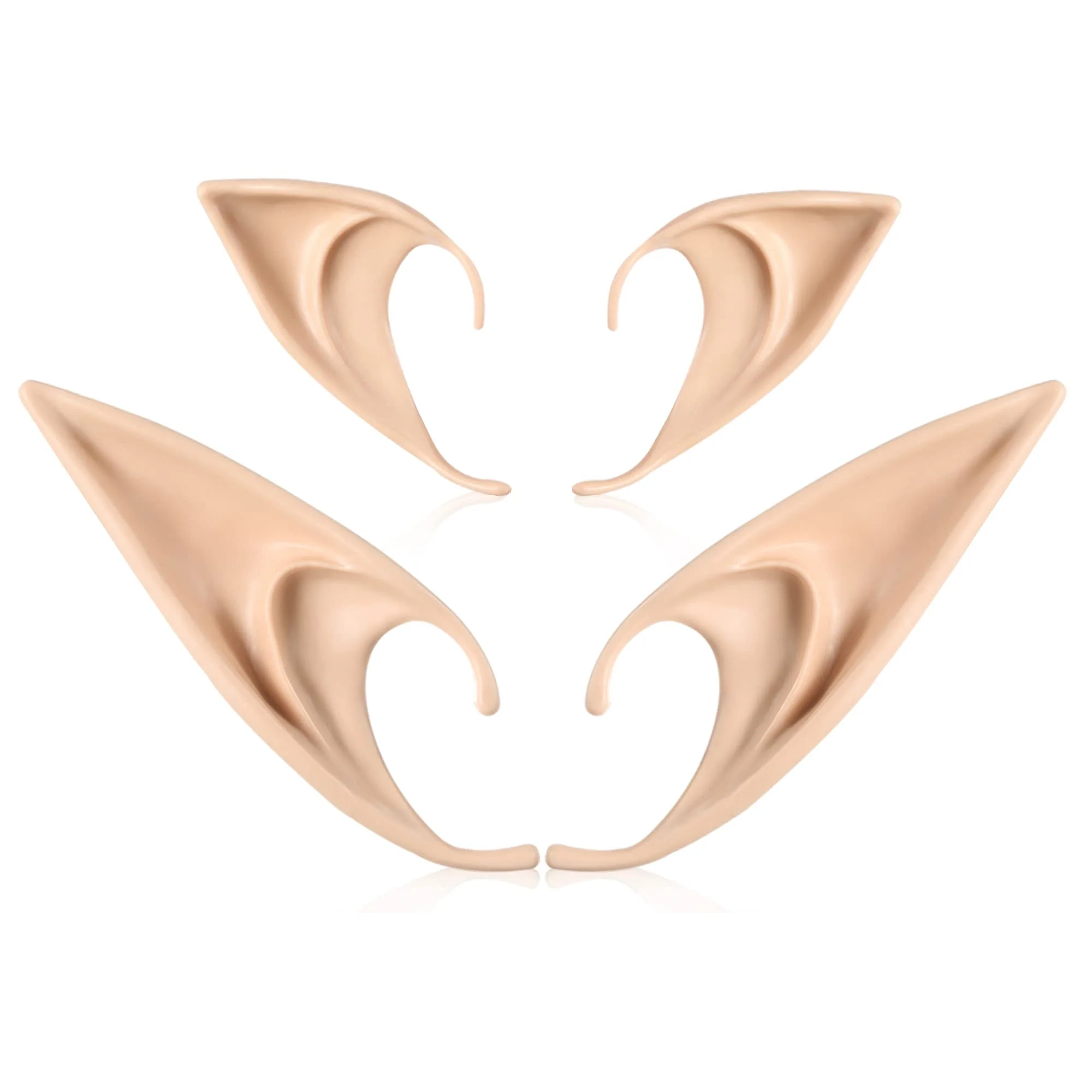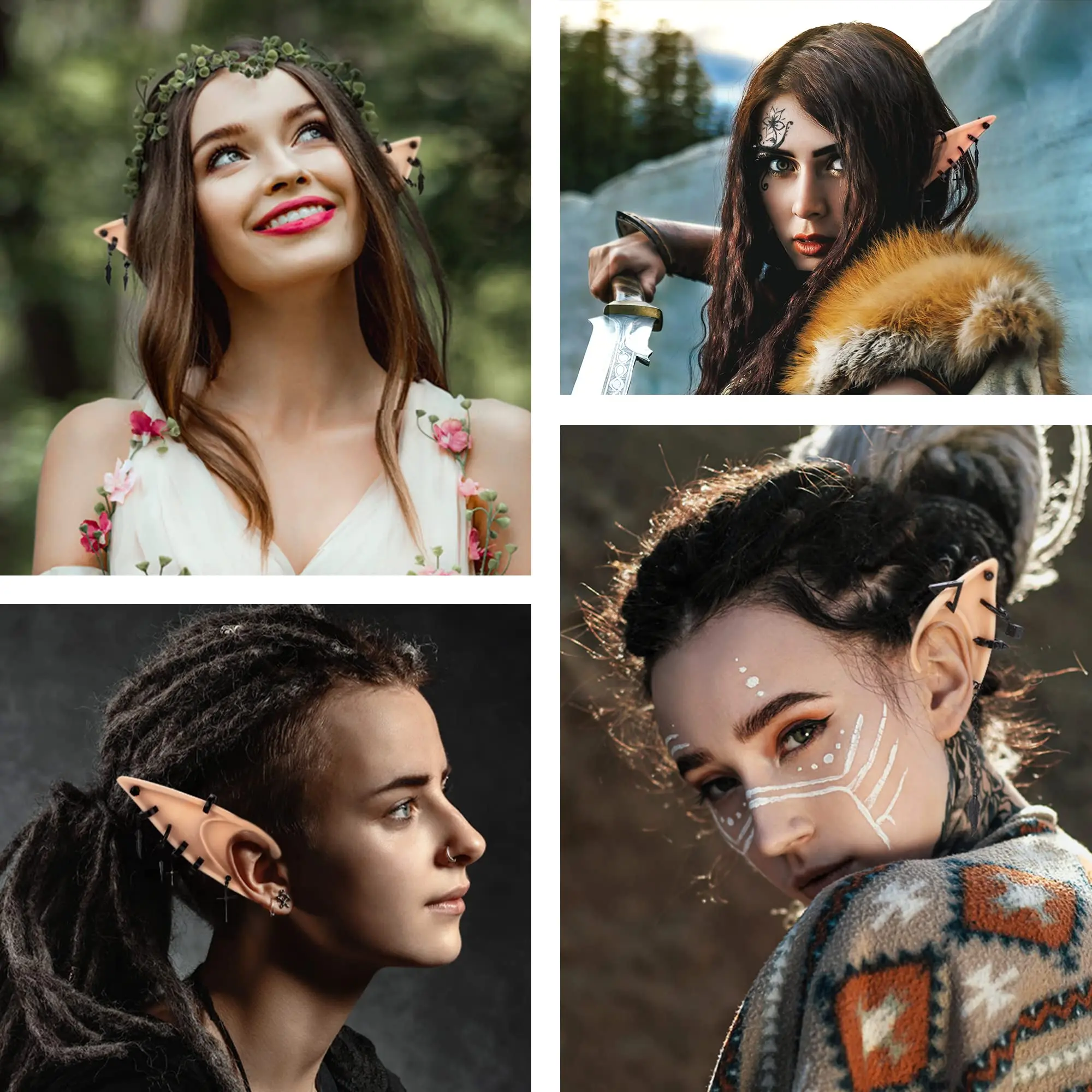 Elf Ears with Pierced Earrings Set - Soft Fairy Ears and Punk Dangle Hoop Piercing Earrings for Women Girls Unisex Elf Halloween Renaissance Anime Party Cosplay Accessories Photo Props
