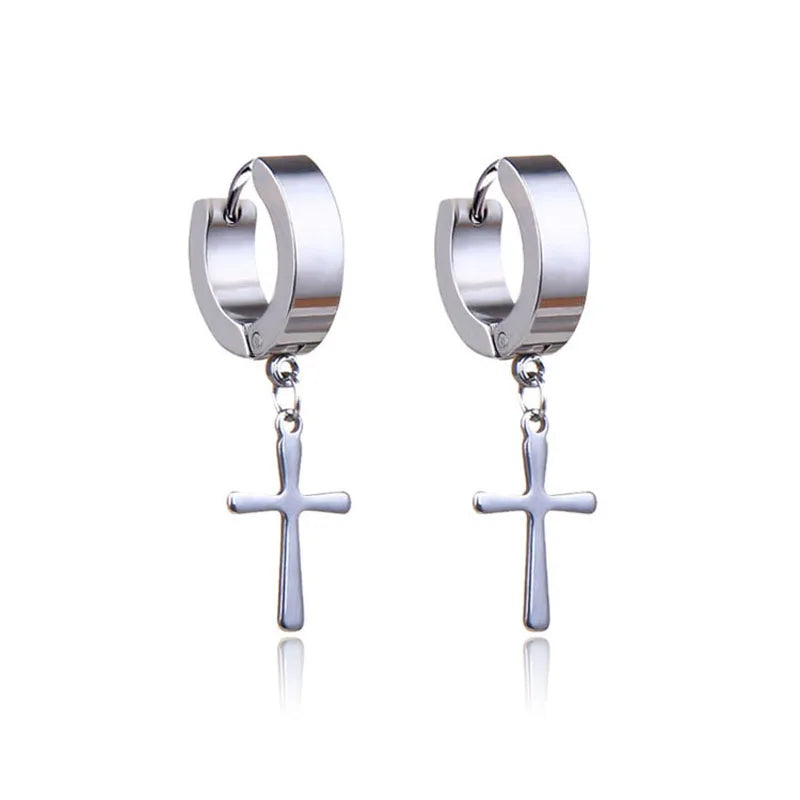 2-14pcs Stainless Steel Punk Dangle Hoop Piercing Earrings with 2Pairs Fairy Elf Ears for Women Men Halloween Cosplay Photo Prop 2pcs Silver D SALE
