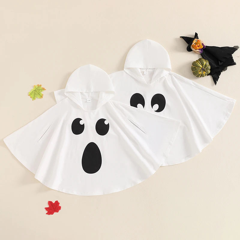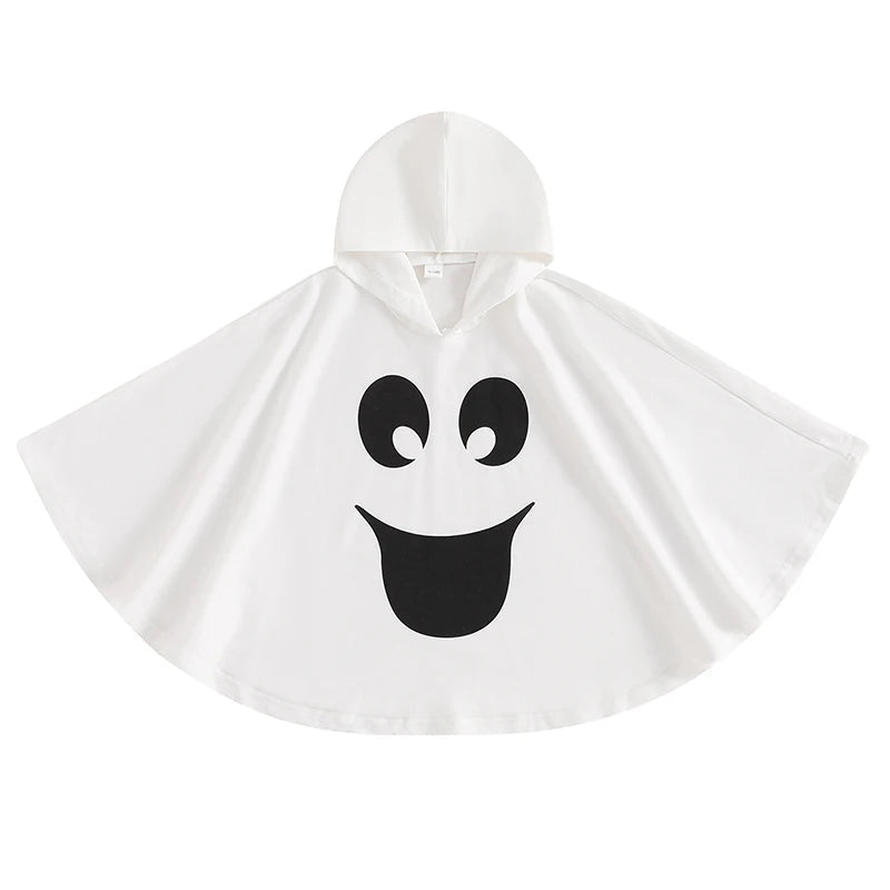 Kid Halloween Costume Ghost Print Hood Cape Cosplay Clothes Cloak for Boys and Girls
