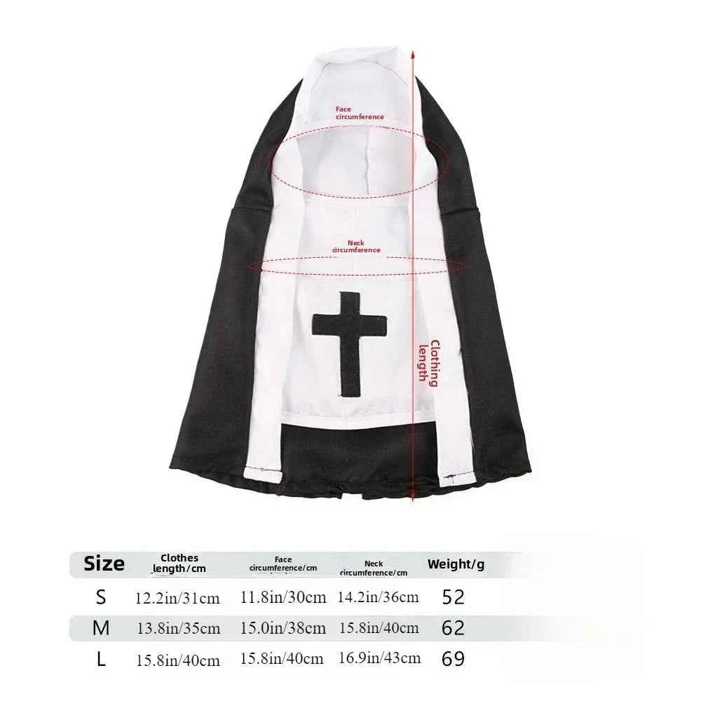 Transform your furry friend into a hilarious and adorable nun with our Dog Role Play Costume. Made with safe materials, the costume fits most pet sizes and includes a pullover design cape.