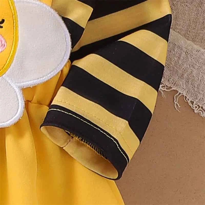 Baby Girls Autumn Skirt Sets Flying Sleeve Romper Bee/Beetle Embroidery Suspender Dress Headband Sets