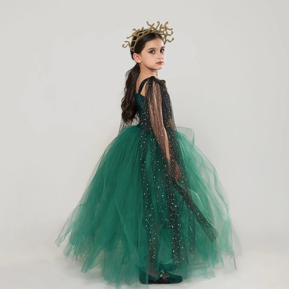 Girls Green Medusa Costume with Headpiece for Kids Halloween Medusa Dresses Greek Roman Kids Fancy Gown Tutu Dress Cosplay