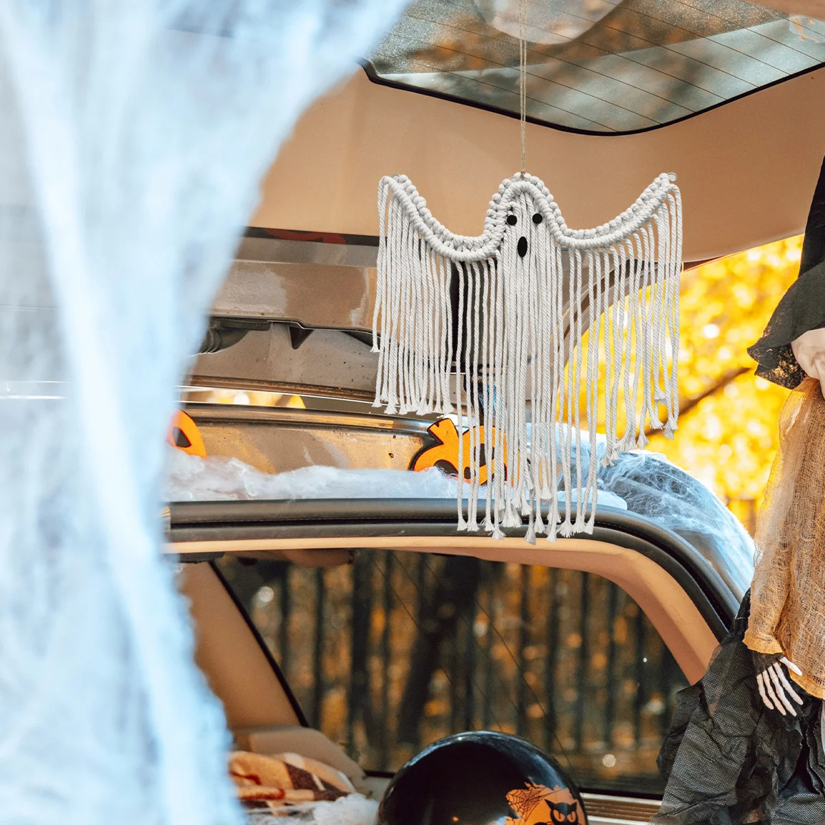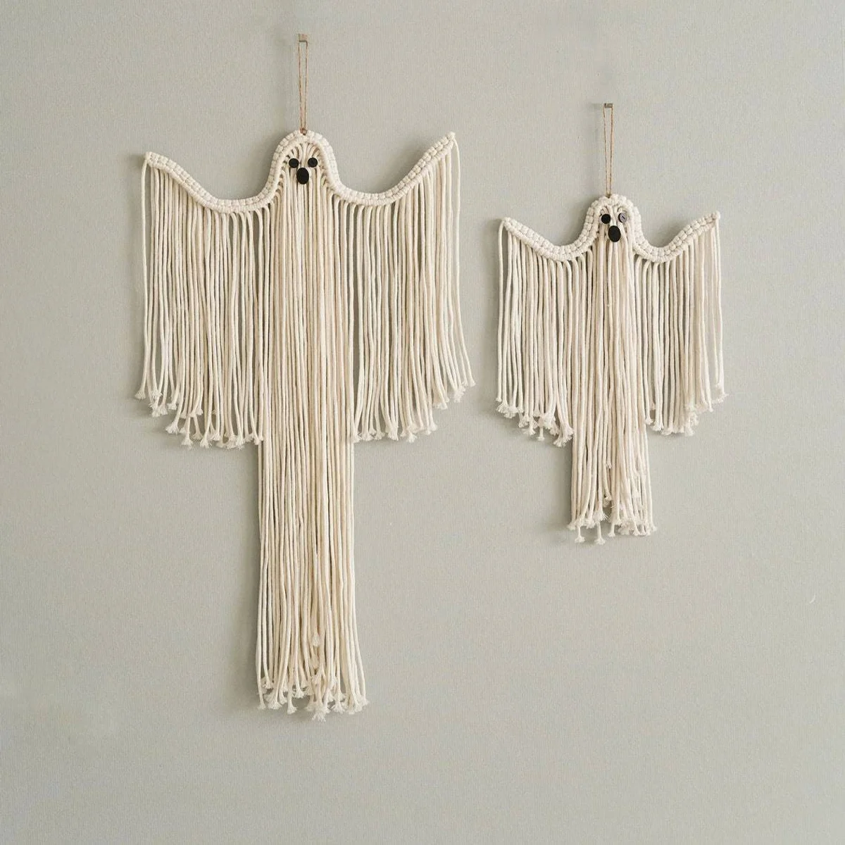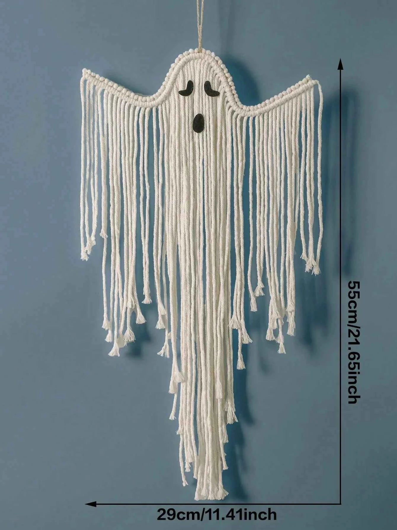 1pc boho halloween ghost wall hanging decor, macrame fringe spooky ghost ornaments, bohemian wall art for home, living room, fireplace, party, haunted house decoration