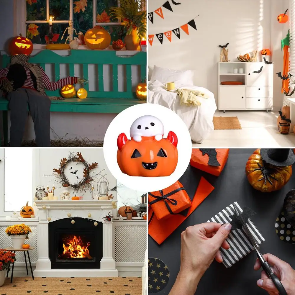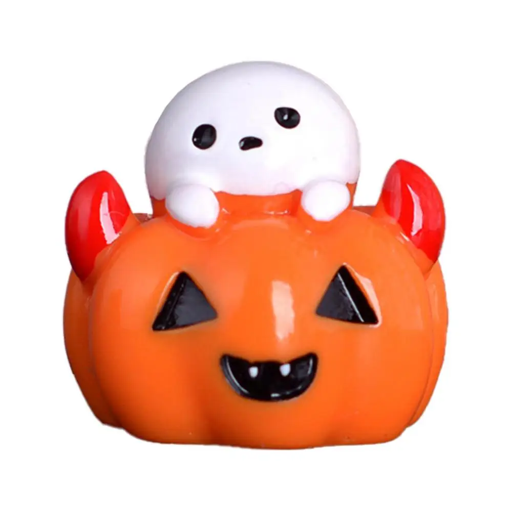 Halloween Miniature Ornament Pumpkin Resin Figurines Ornaments Ghost DIY Fairy Halloween Garden Adornments Ghost Doll Miniature