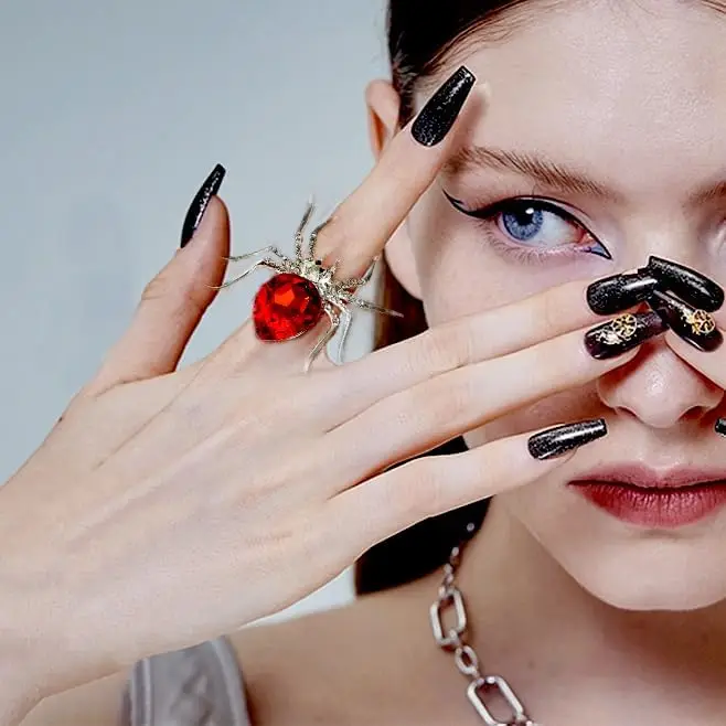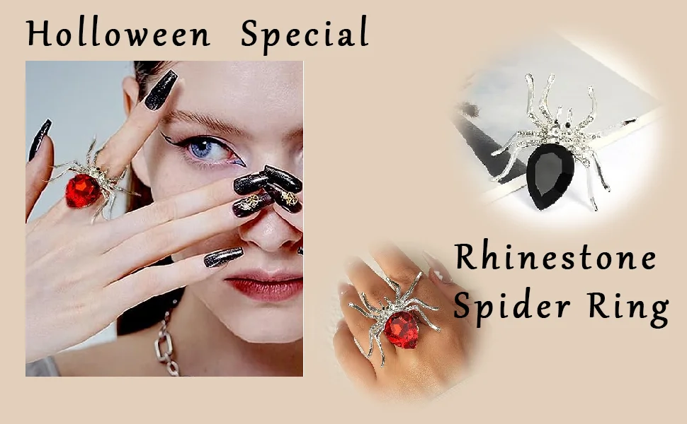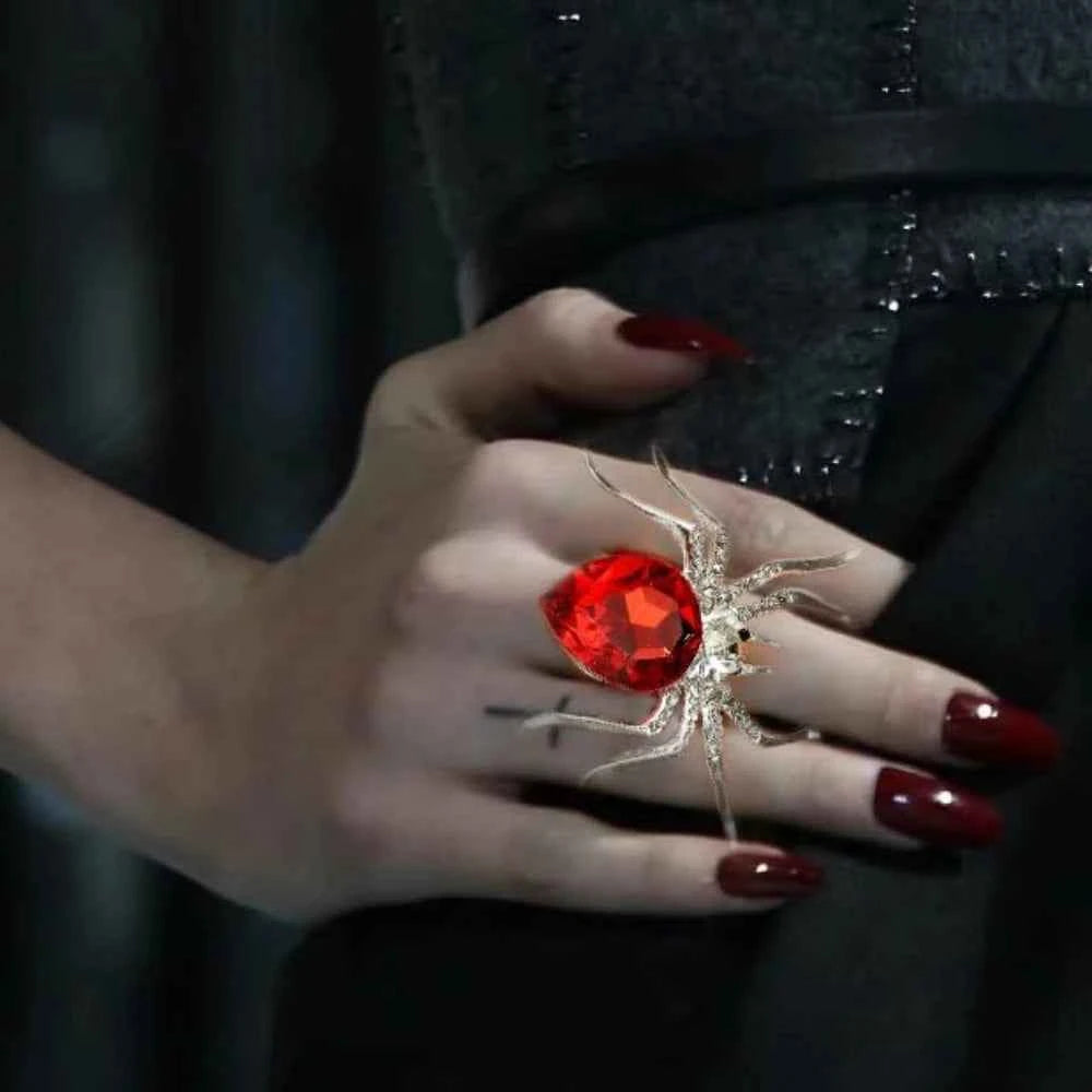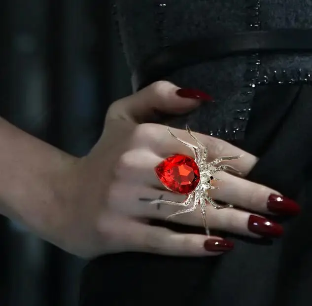 Halloween Spider Open Ring Exaggerate Big Spider Zirconia Crystal Statement Ring for Women Punk Gothic Jewelry Halloween Gift Red resizable SALE