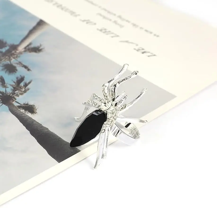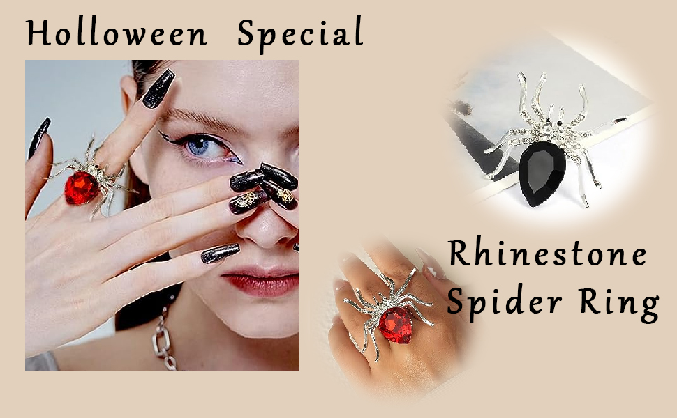 Halloween Spider Open Ring Exaggerate Big Spider Zirconia Crystal Statement Ring for Women Punk Gothic Jewelry Halloween Gift
