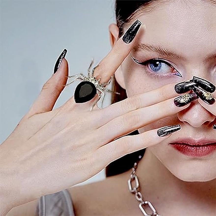 Halloween Spider Open Ring Exaggerate Big Spider Zirconia Crystal Statement Ring for Women Punk Gothic Jewelry Halloween Gift black resizable SALE