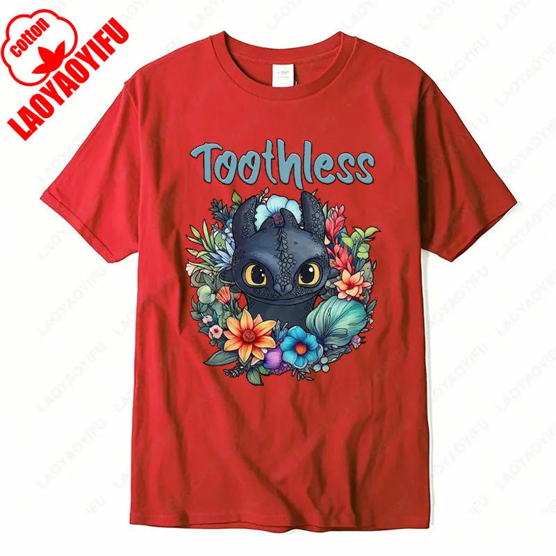 How To Train Your Dragon Toothless Floral Cotton T-Shirt Fashion Cartoon Anime Graphic Tshirt Funny Kawaii Men Woman Casual Tee Wu-red-05 SALE