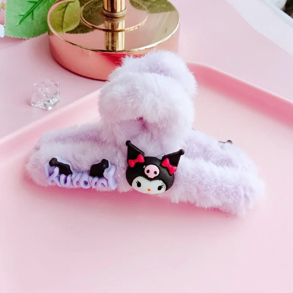 Kawaii Sanrio Hairpin Clasp Plush Kuromi Cinnamoroll Hello Kitty Autumn Winter Anime Figure Ponytail Curled Hair Accesories Gift