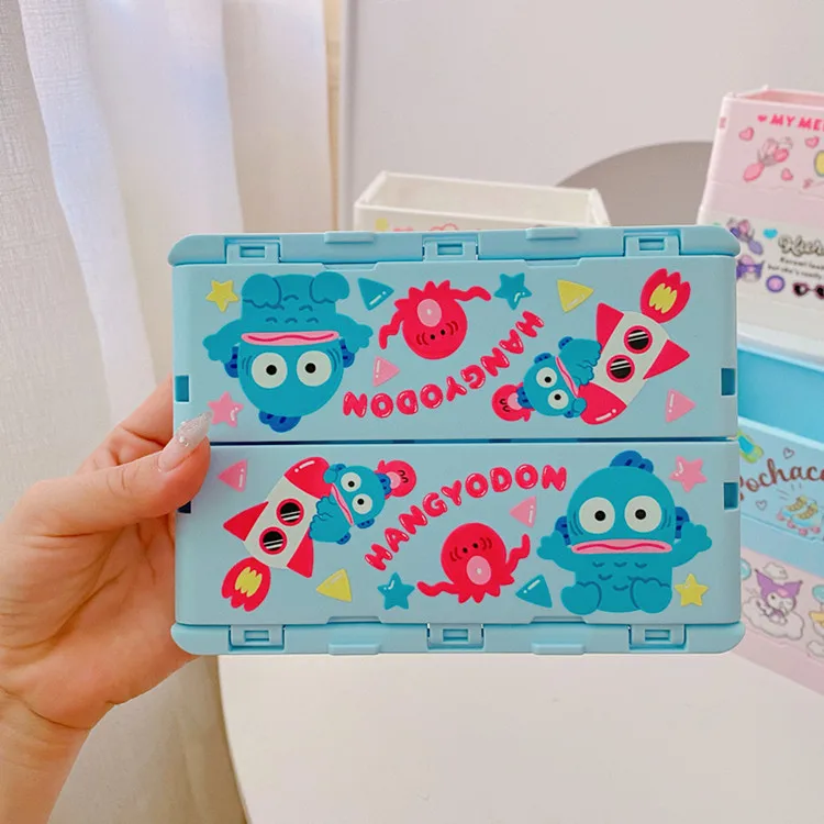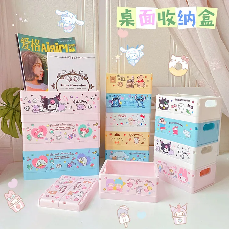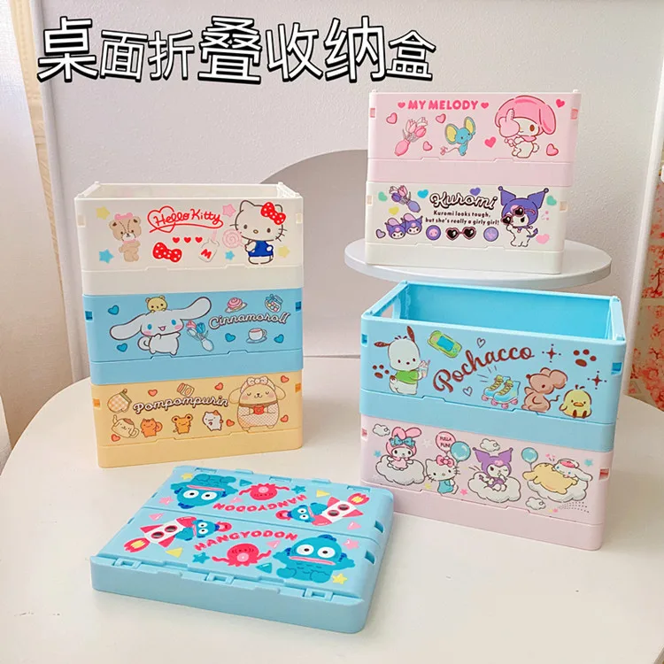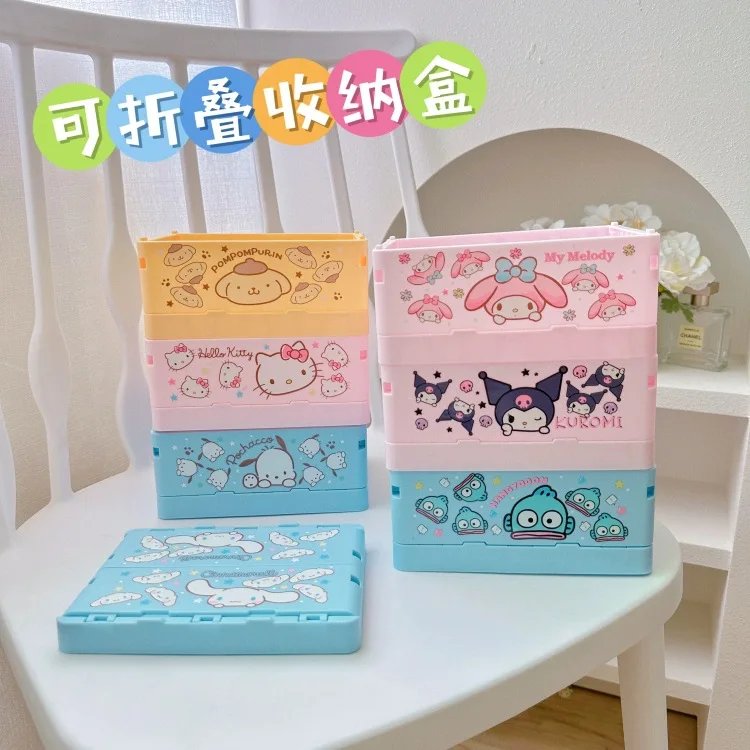 Sanrio Kawaii Hello Kitty My Melody Kuromi Cinnamoroll Desktop Storage Box Foldable Stackable Cosmetic Organizer Desktop Storage