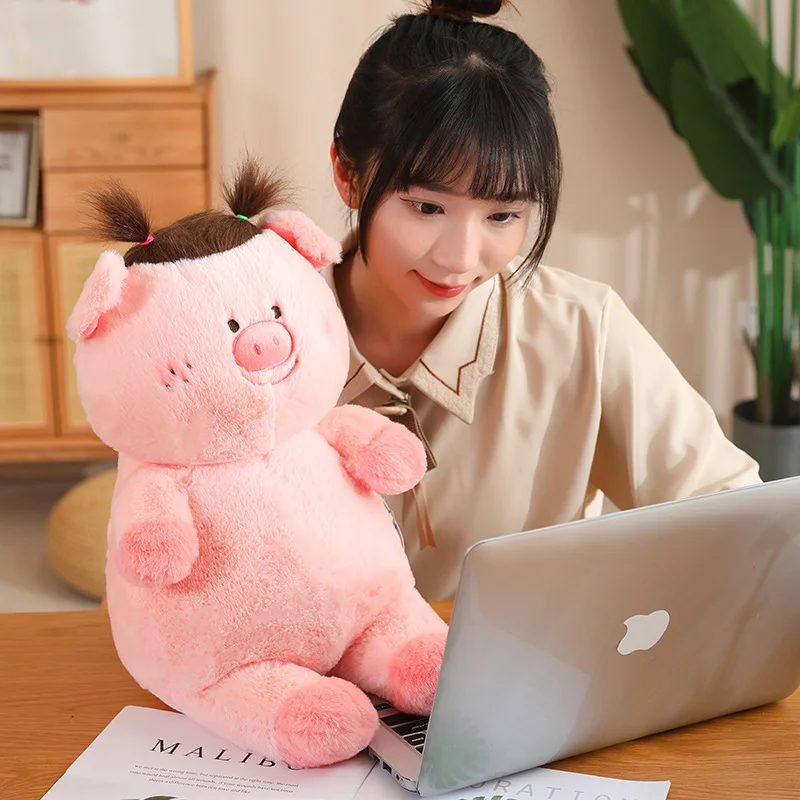 Funny DIY Hairstyle Cute Pig Plush Toys Anime Soft Stuffed Animals Chubby Dog Bear Doll Freely Change Hairstyle Pig 40cm SALE
