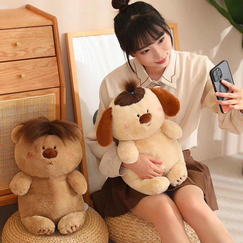 Funny DIY Hairstyle Cute Pig Plush Toys Anime Soft Stuffed Animals Chubby Dog Bear Doll Freely Change Hairstyle Bear 40cm SALE