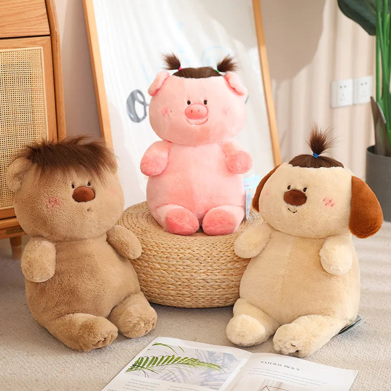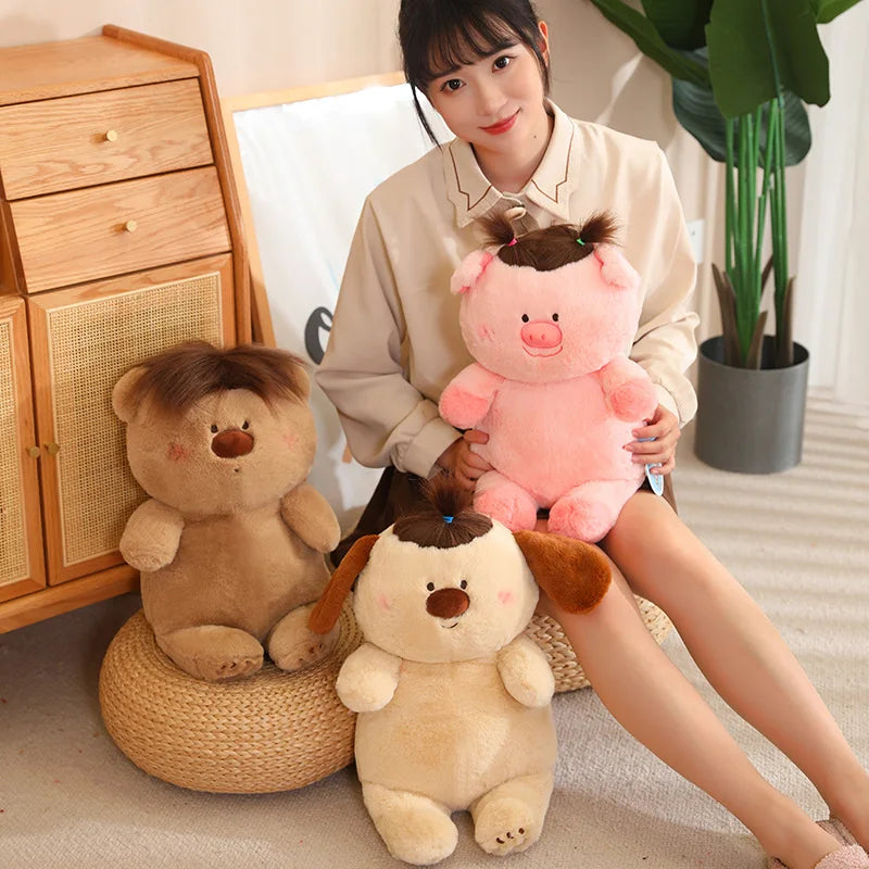 Funny DIY Hairstyle Cute Pig Plush Toys Anime Soft Stuffed Animals Chubby Dog Bear Doll Freely Change Hairstyle