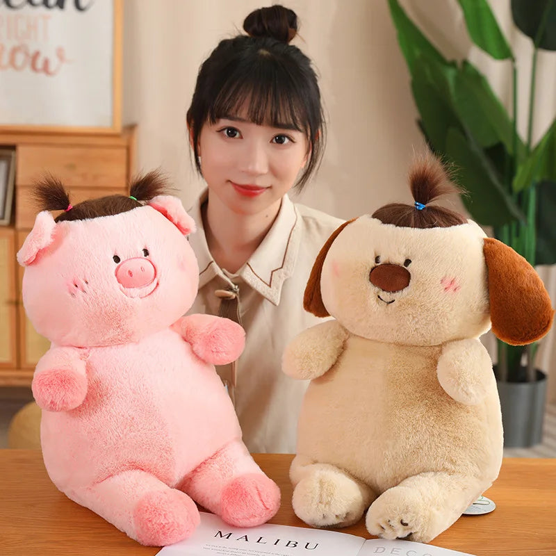 Funny DIY Hairstyle Cute Pig Plush Toys Anime Soft Stuffed Animals Chubby Dog Bear Doll Freely Change Hairstyle SALE