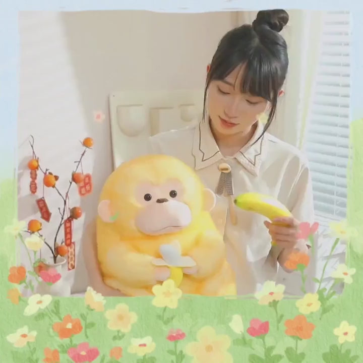Design: Cute golden monkey holding a banana, ideal for cuddling