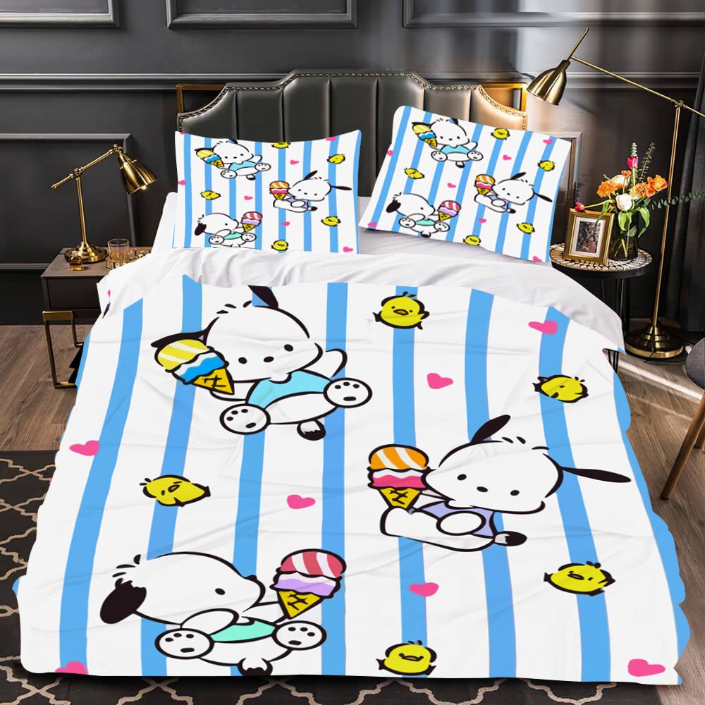 Hello Kitty Bed Set Pochacco Cute Bed Sheets Cartoon Bed Cotton Comforters White Duvet Cover LS22810