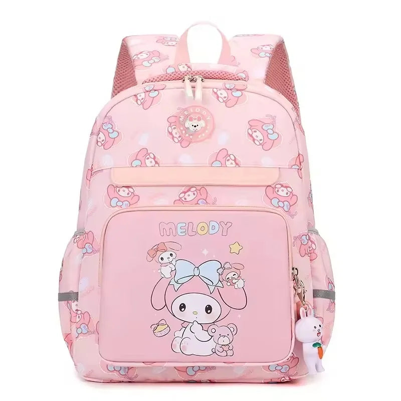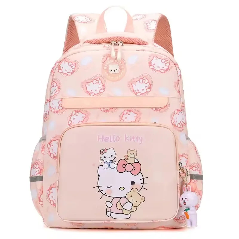 This Hello Kitty cartoon school backpack is designed for girls, offering a spacious interior to hold all essentials. It features reflective elements for nighttime safety, combining practical use with a casual, straightforward style perfect for daily school activities.