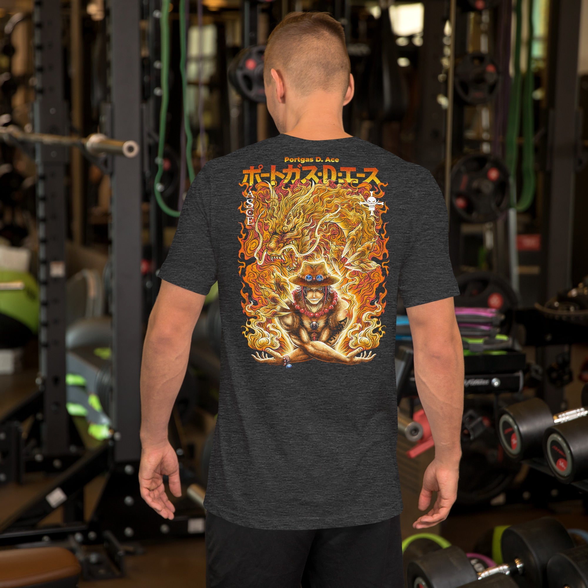 One Piece t-shirt Portgas D Ace unisex anime funny cartoon staple cotton Dark Grey Heather