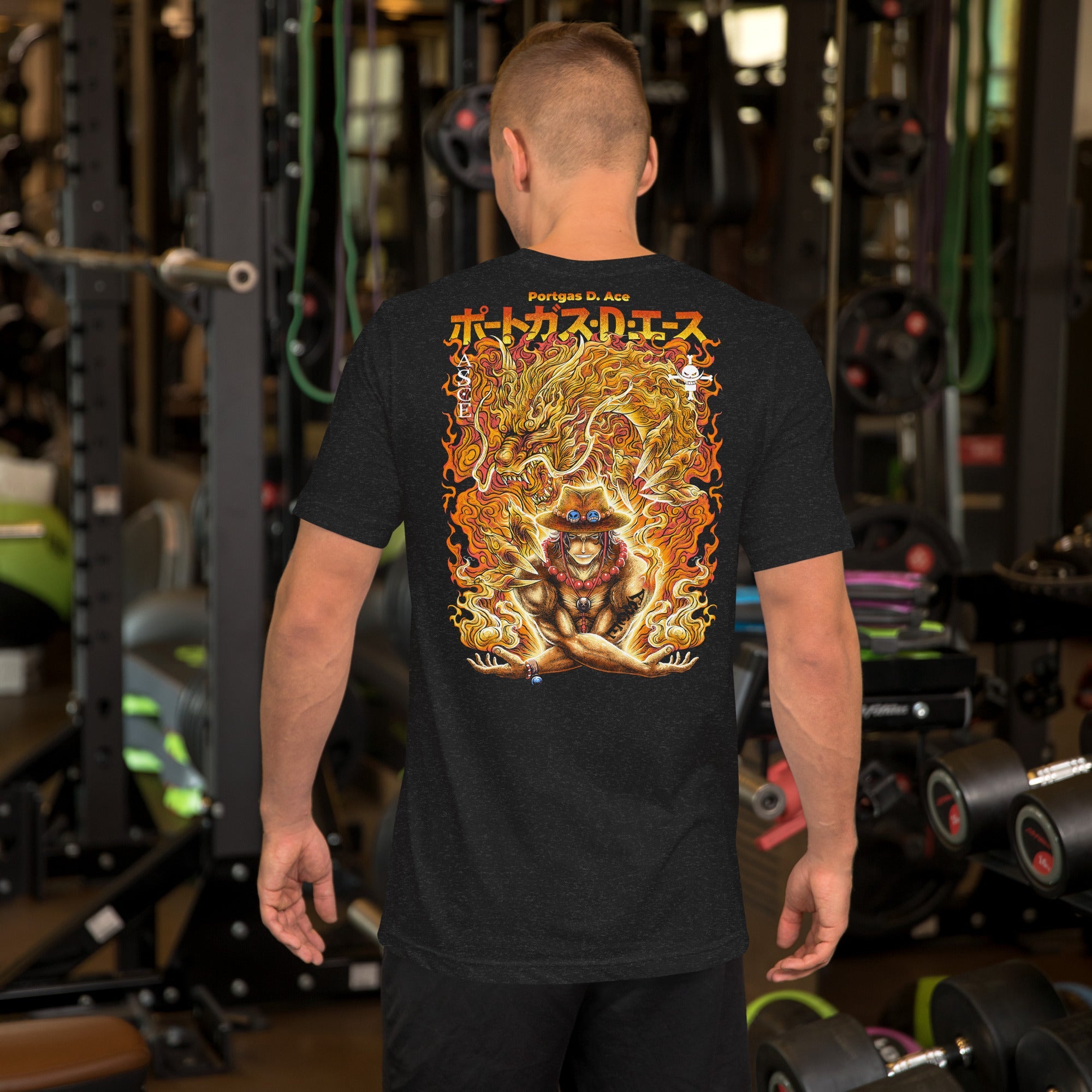 One Piece t-shirt Portgas D Ace unisex anime funny cartoon staple cotton Black Heather