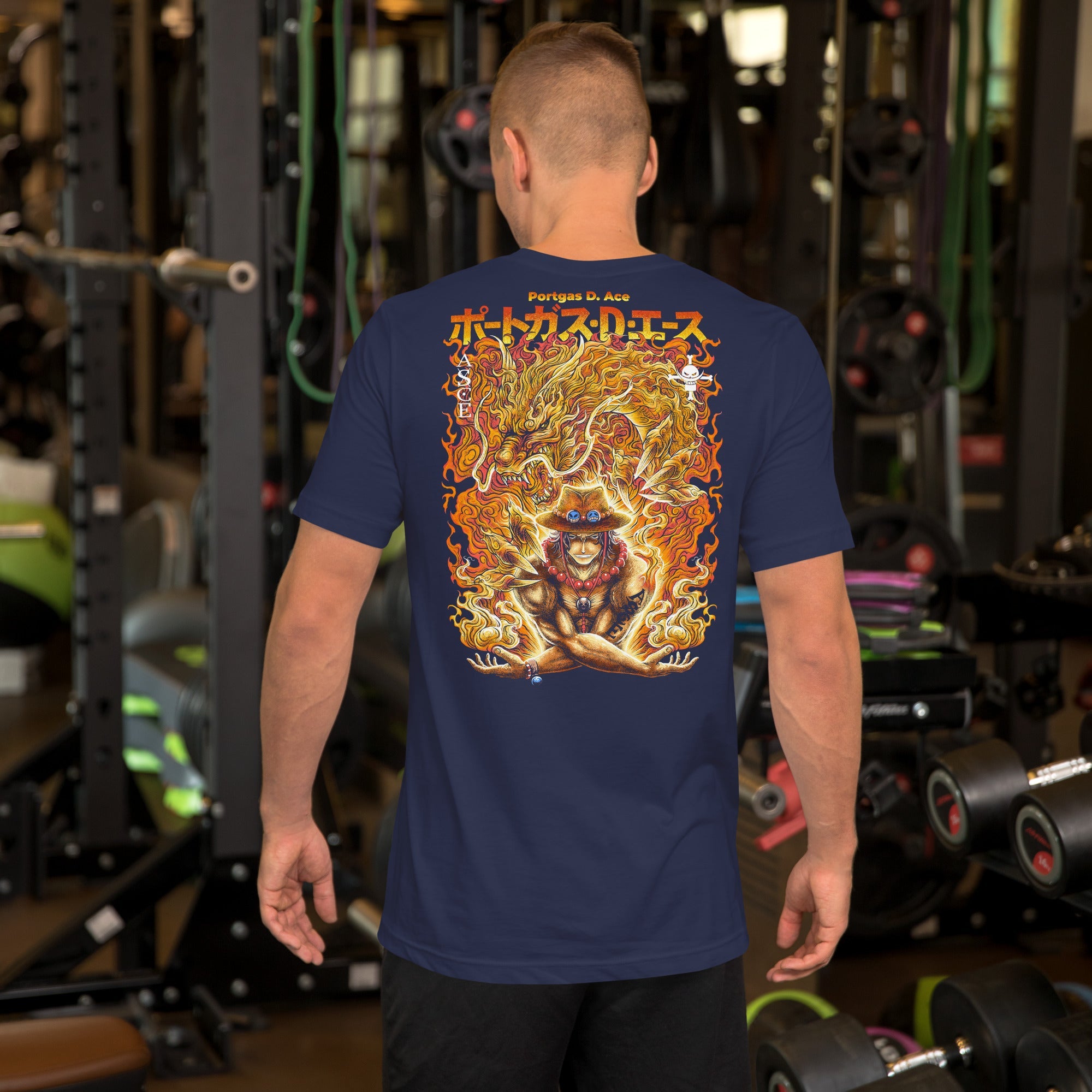One Piece t-shirt Portgas D Ace unisex anime funny cartoon staple cotton Navy
