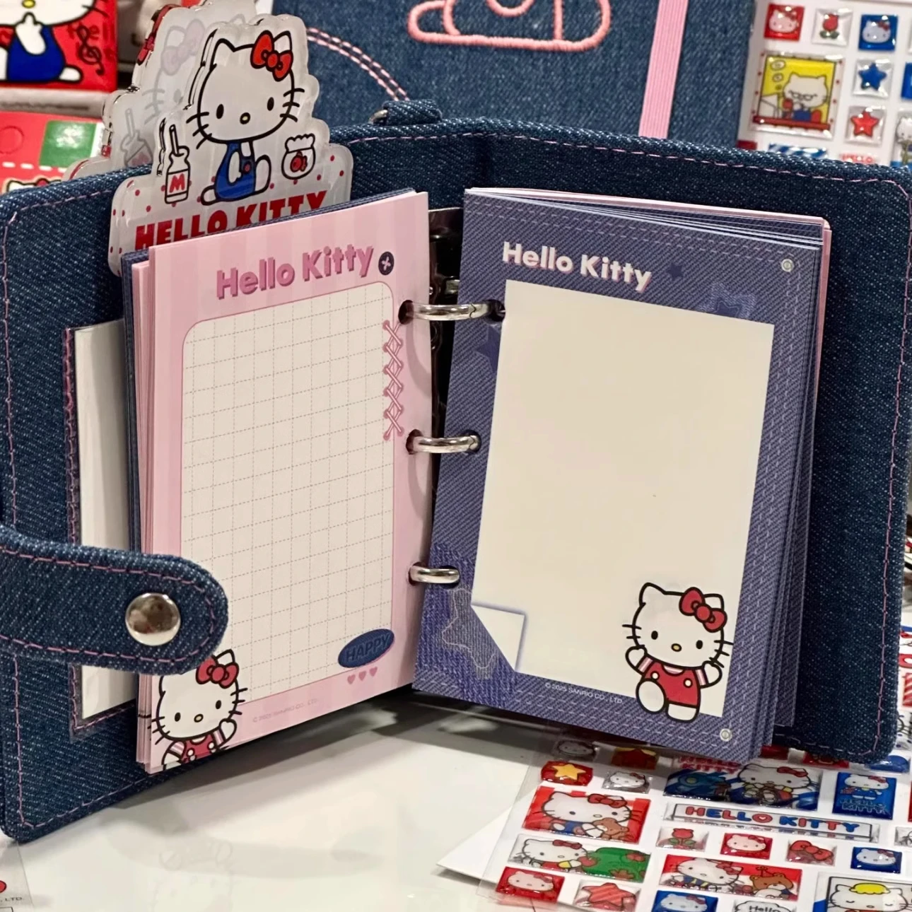 Cute Cartoon Anime Merchandise Hello Kitty High Looks Handheld Account Book Student Portable Denim Loose Leaf Diary Notepad Gift