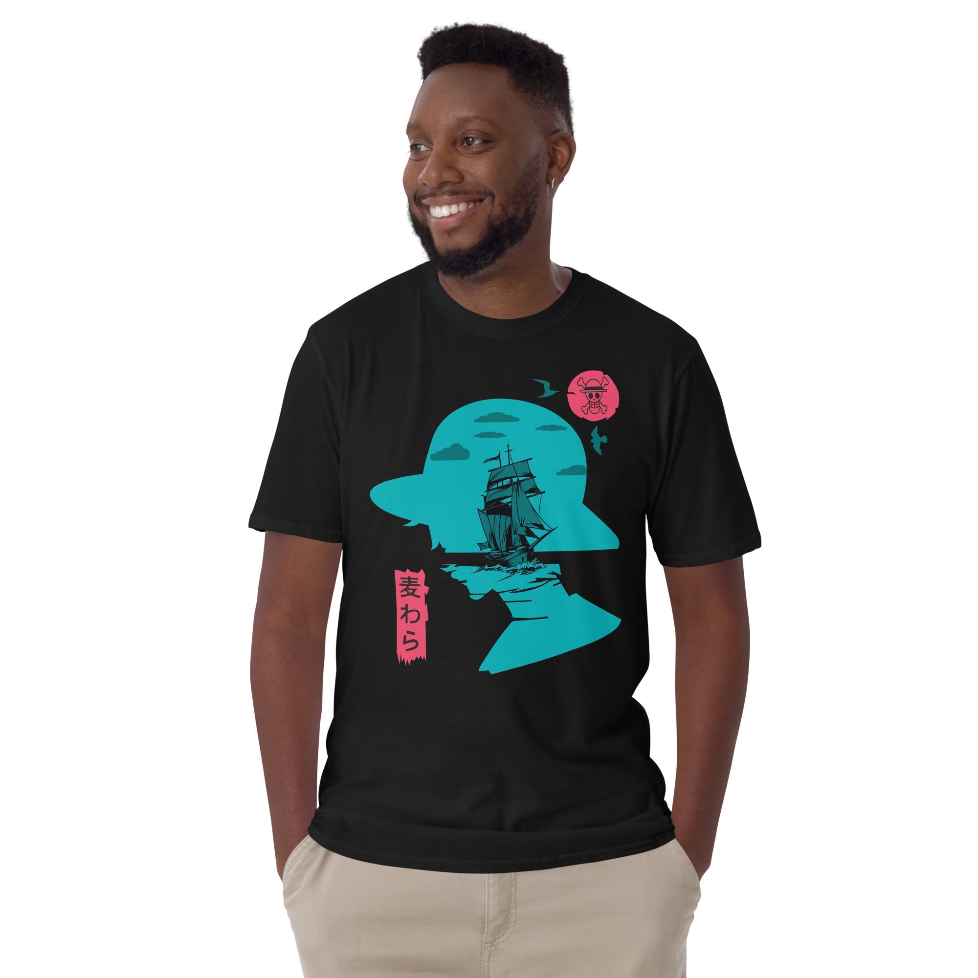 One Piece t-shirt short sleeve round neck shirt cotton Black