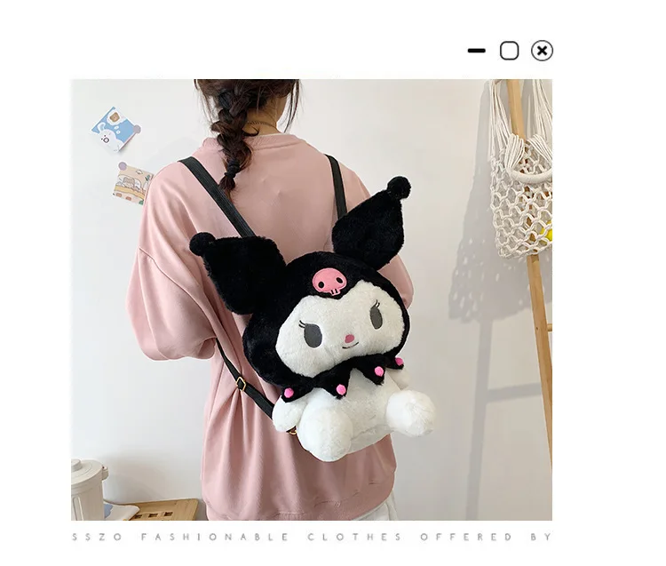 Choose from 24 adorable Sanrio plush doll styles, including the lovable Cinnamoroll. These soft, kawaii stuffed backpacks are perfect for girls, making a charming gift for birthdays or special occasions. Lightweight and cute, they add a playful touch to any outfit while offering practical storage. Ideal for your child or girlfriend, these cartoon bags bring joy and comfort wherever they go.