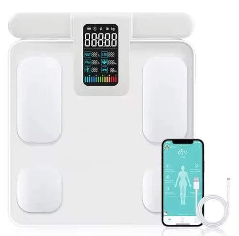 Comprehensive Data: Monitor vital health indicators including weight, body fat percentage, muscle mass, bone mass, water percentage, and metabolic age. Tailor your fitness goals with insights that go beyond the scale.