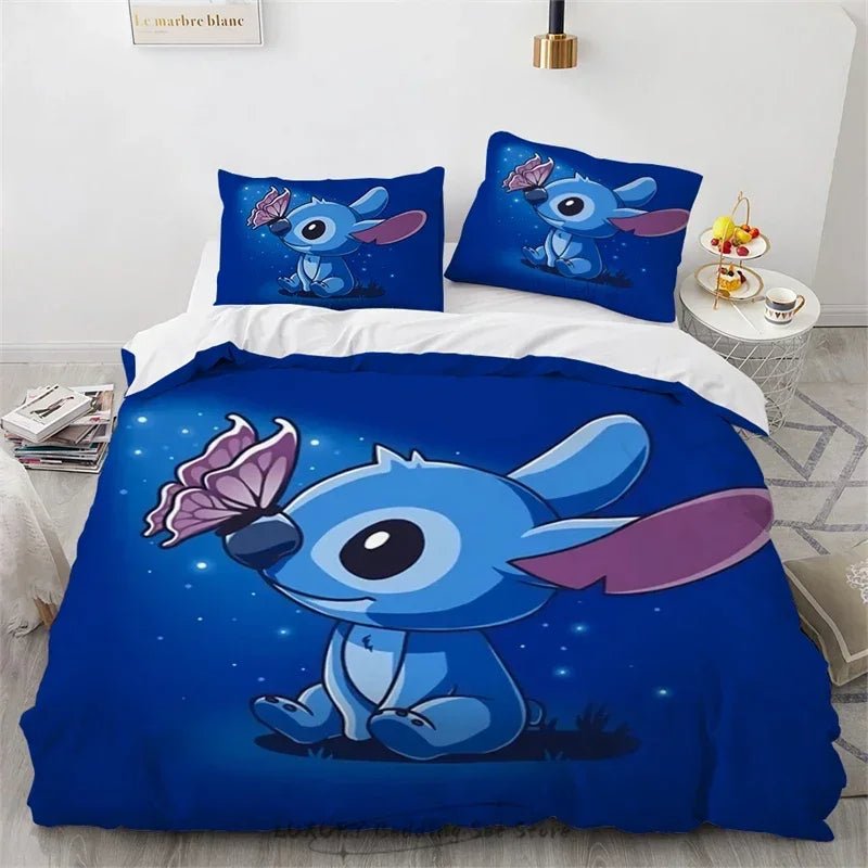 Transform your bedroom into a cozy and whimsical paradise with our Lilo & Stitch Duvet Cover Gift Bedding Set. Made with high-quality materials, this set features a charming design of Lilo and Stitch, making it the perfect addition to any fan's collection. Bring joy and comfort to your bedroom with this delightful set.