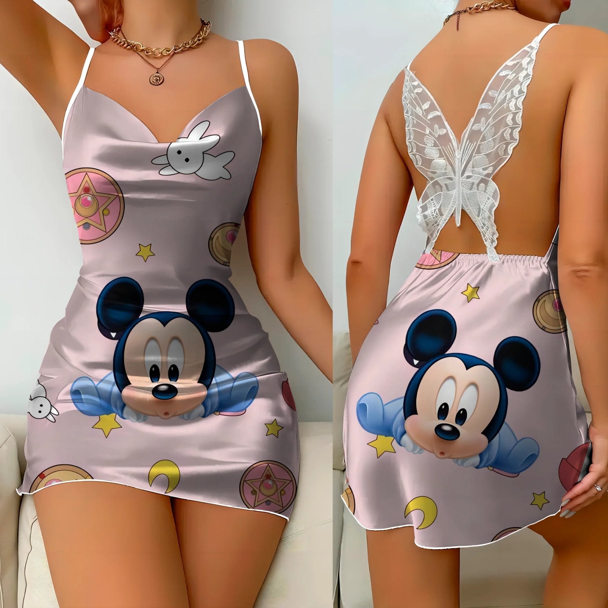 Introducing our Mickey Elegant Dress for women! This lace dress with a Minnie Mouse bow knot is perfect for a cozy night or a special occasion. With an elegant design and comfortable fit, this dress combines fashion and comfort effortlessly. Get ready to turn heads and feel confident in this stylish piece.