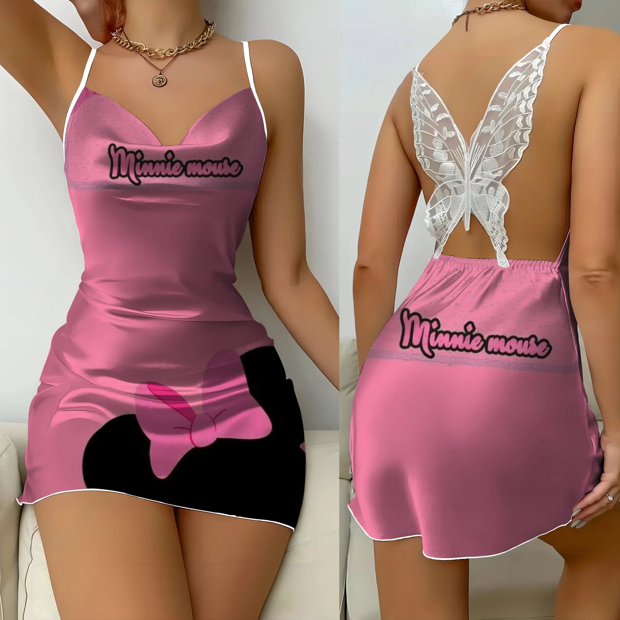 Minnie Mouse Backless Dress Bow Knot Womens Dresses Satin Surface Mickey Pajama Skirt Fashion 9 SALE
