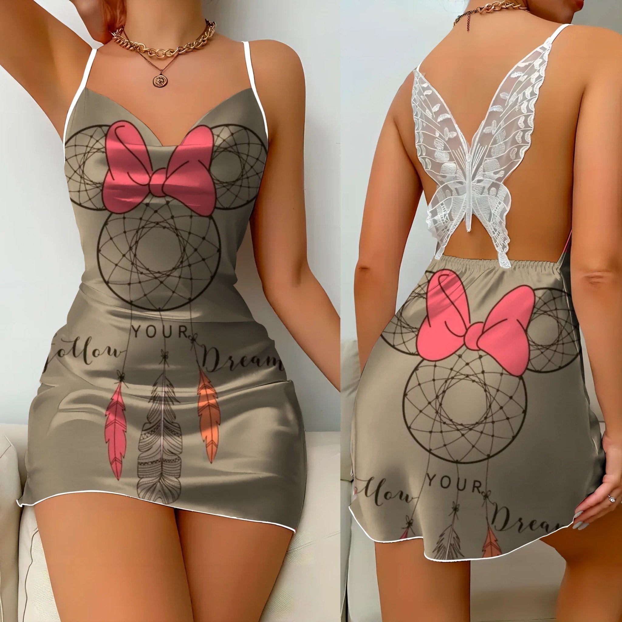 Get ready to feel elegant and stylish with our Minnie Mouse Backless Dress! This fashion-forward pajama skirt features a beautiful bow knot, adding a touch of sophistication to your sleepwear. Perfect for any Mickey-loving woman, this dress will make you feel like a Disney princess.