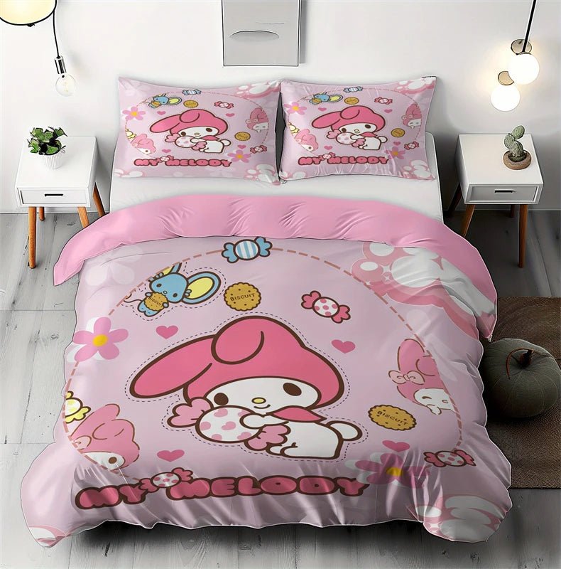Add a touch of cuteness to your bedroom with our My Melody Duvet Cover in Pink. Made from high-quality materials, this duvet cover is not only machine washable but also features a cute anime cartoon design. Complete your bedding set with matching pillowcases for a charming and easy-to-care-for look.