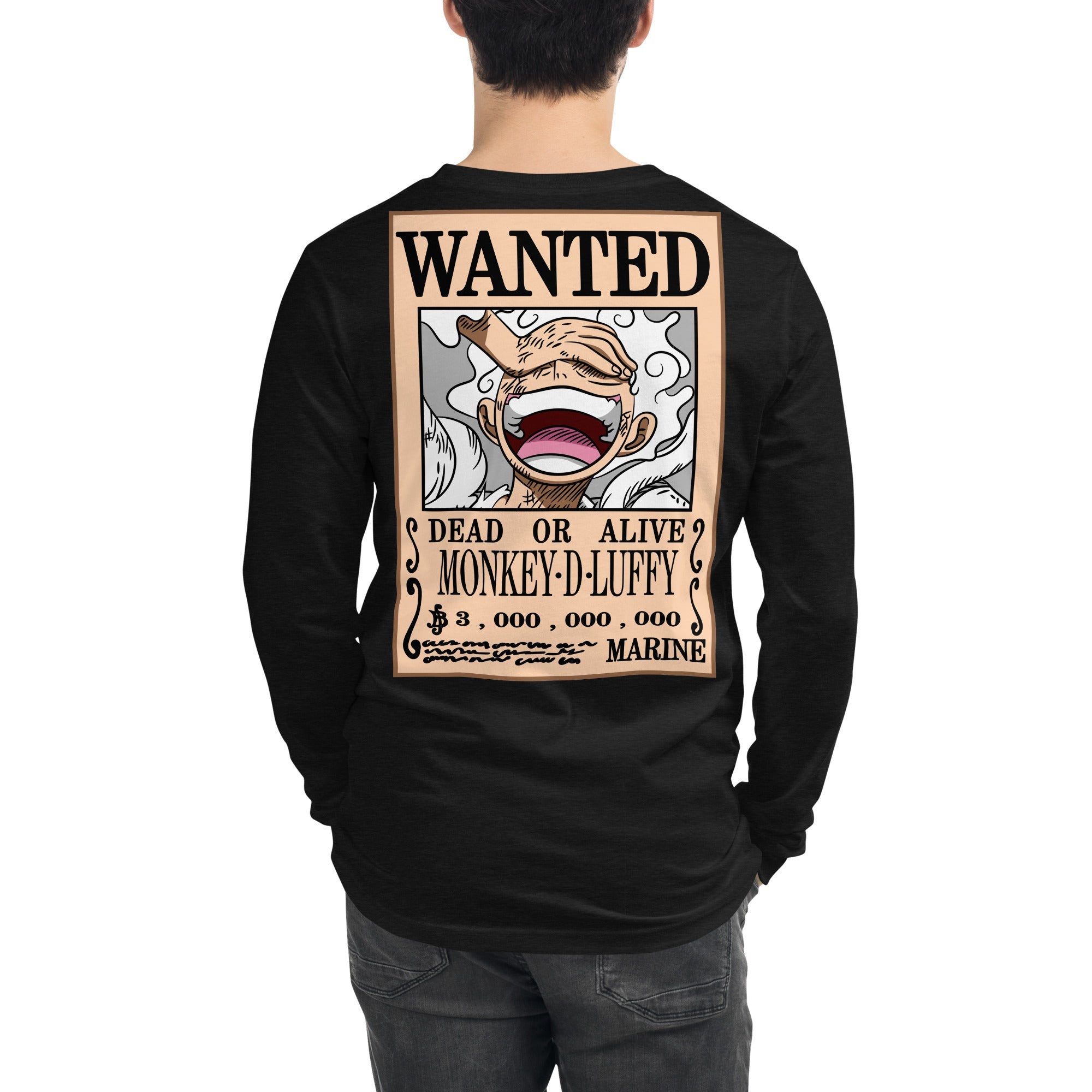 One Piece shirt crew neck unisex long sleeve tee OPP1 Black Heather
