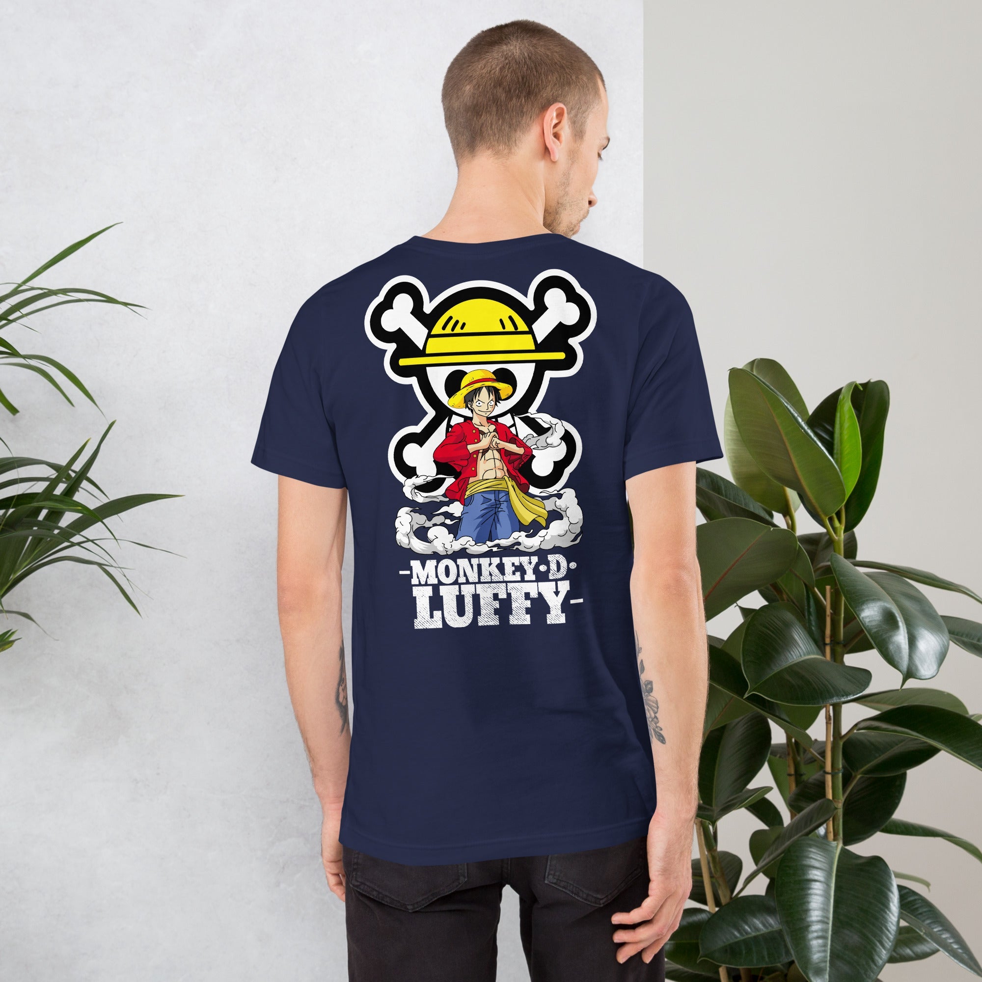 One Piece t-shirt unisex staple Monkey D Luffy round neck shirt cotton Navy