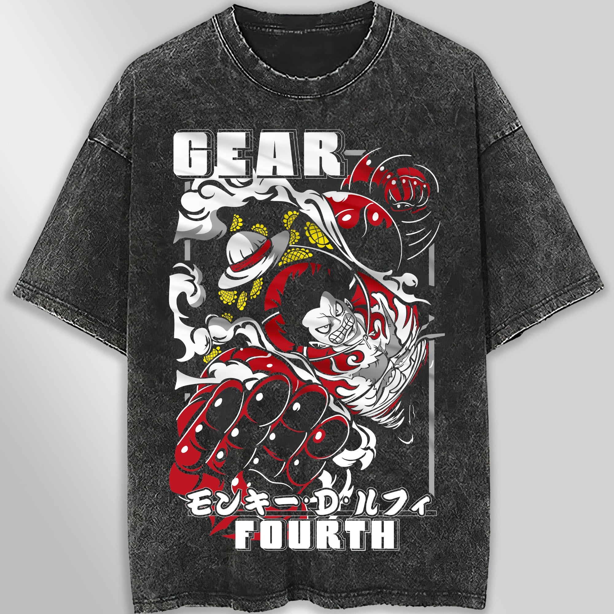 This one piece tee shirt features a vintage design with Luffy gear 4 graphics, perfect for streetwear enthusiasts of all genders. Made with loose and comfortable materials, this tee offers both style and comfort. Upgrade your wardrobe with this unique and versatile piece.
