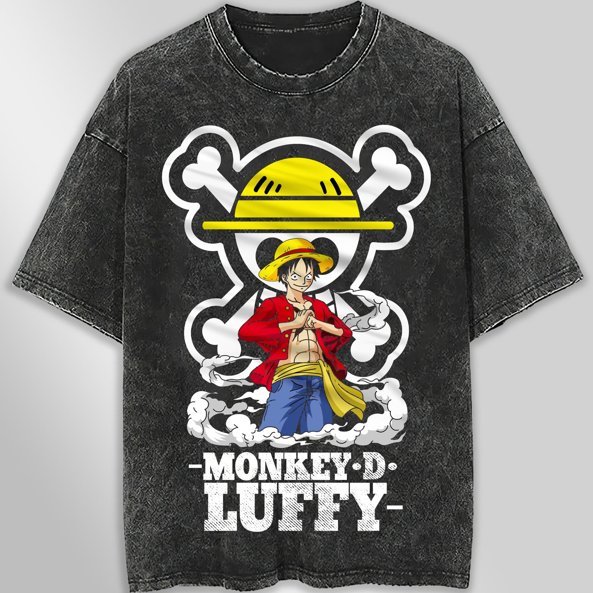 This one piece tee shirt boasts a vintage design featuring Luffy. With its loose fit and unisex design, it offers comfort and style for both men and women. Perfect for streetwear enthusiasts, this graphic tee is a must-have for any fan of the popular manga and anime series.