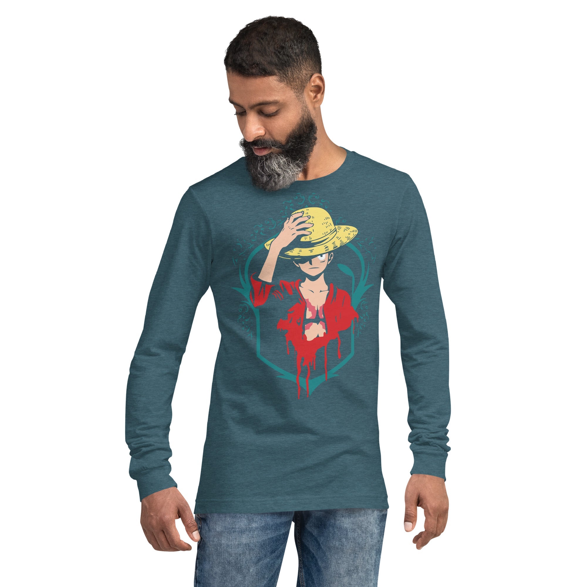 One Piece unisex long tee cotton comfortable Heather Deep Teal