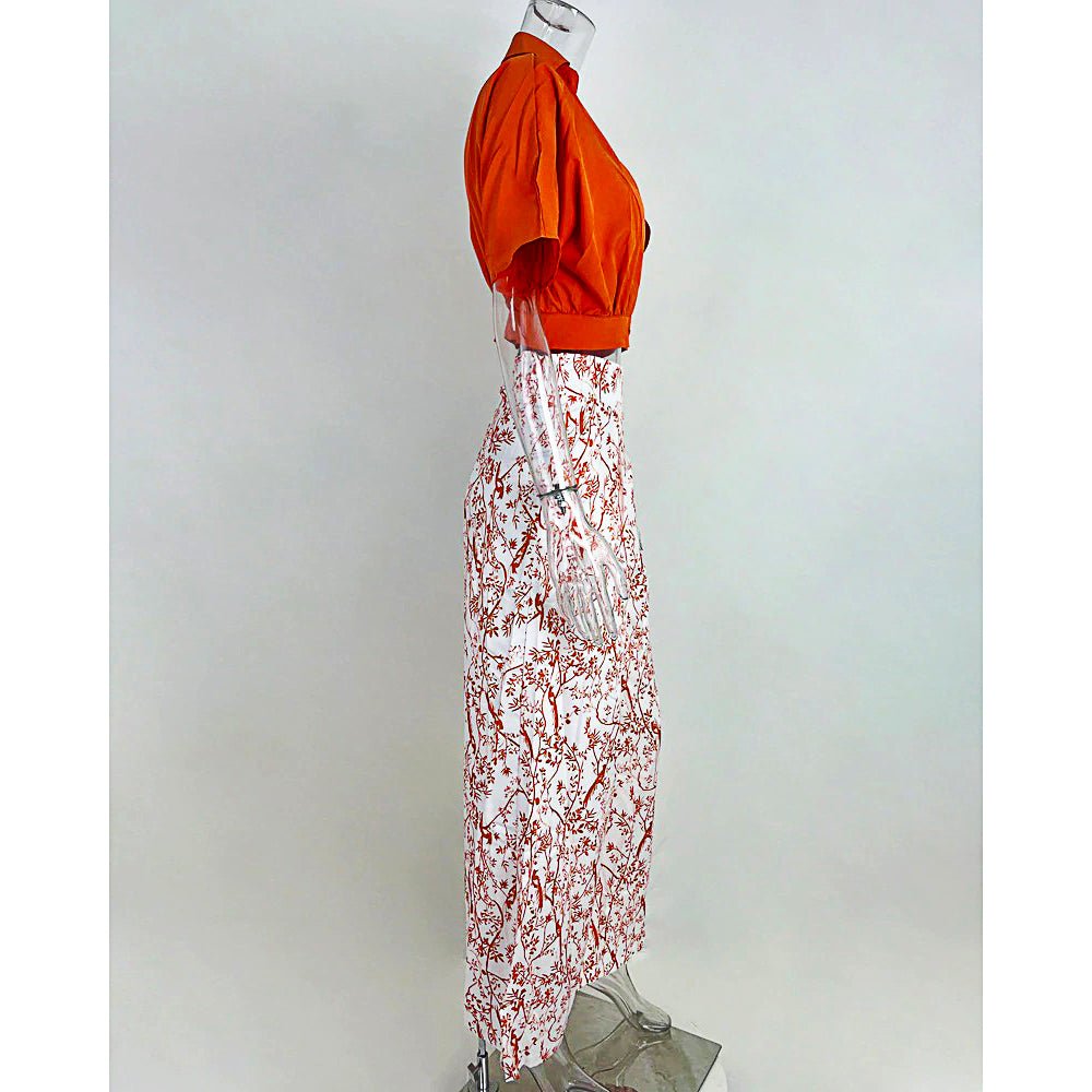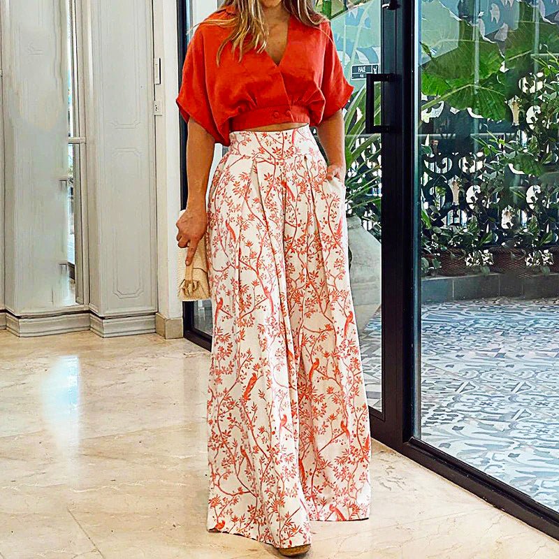 Pantsuit Dress New Bat Sleeve Shirt Wide-legged Pants Casual Set Elegant V-neck Office D382 Orange SALE