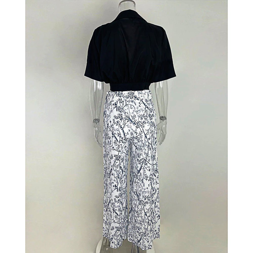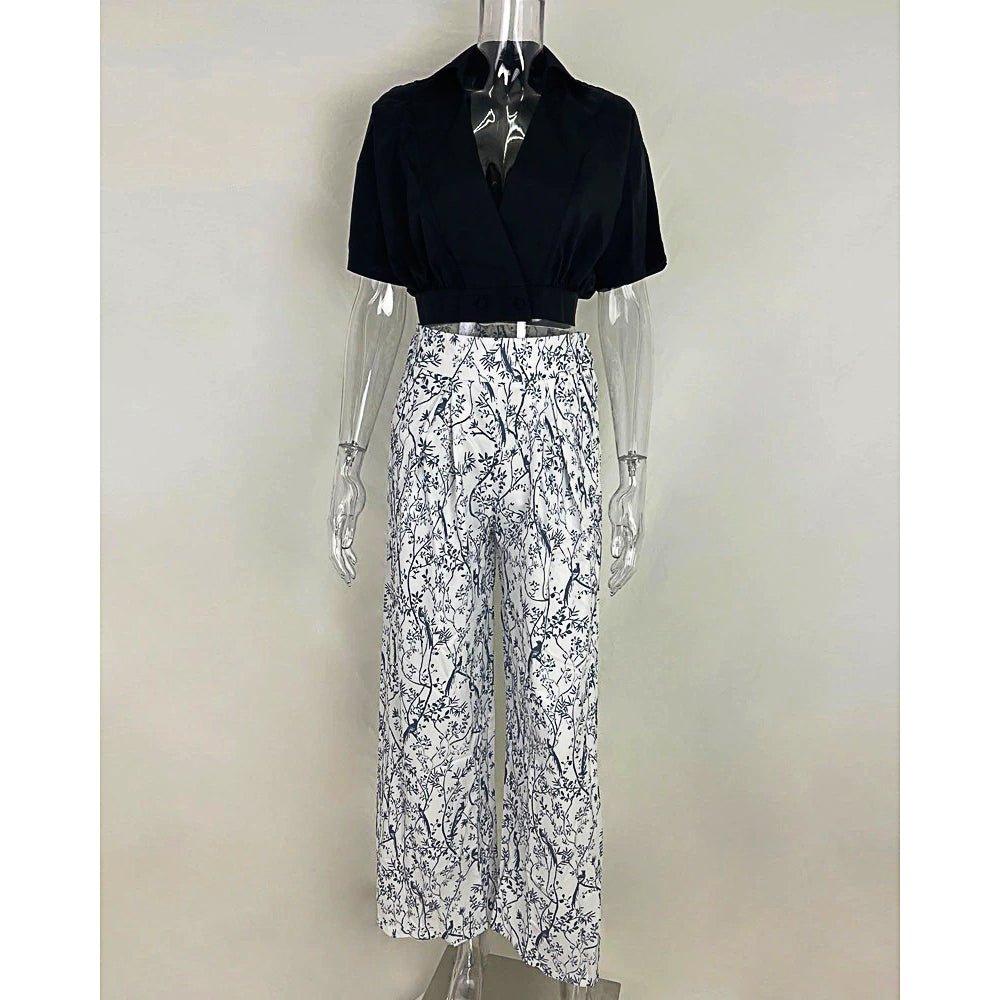 Pantsuit Dress New Bat Sleeve Shirt Wide-legged Pants Casual Set Elegant V-neck Office D382 Black SALE