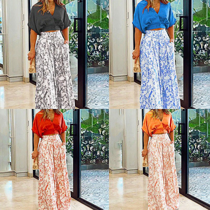 Pantsuit Dress New Bat Sleeve Shirt Wide-legged Pants Casual Set Elegant V-neck Office D382 SALE