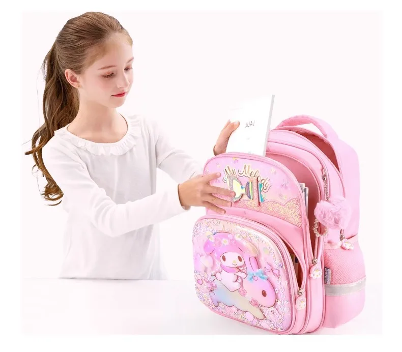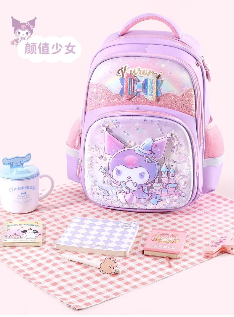 Sanrio Cute Kuromi Melody Cinnamoroll Large Capacity Backpack Boys Girls Cartoon Hello Kitty Kawaii Canvas Schoolbag 2024 Cute