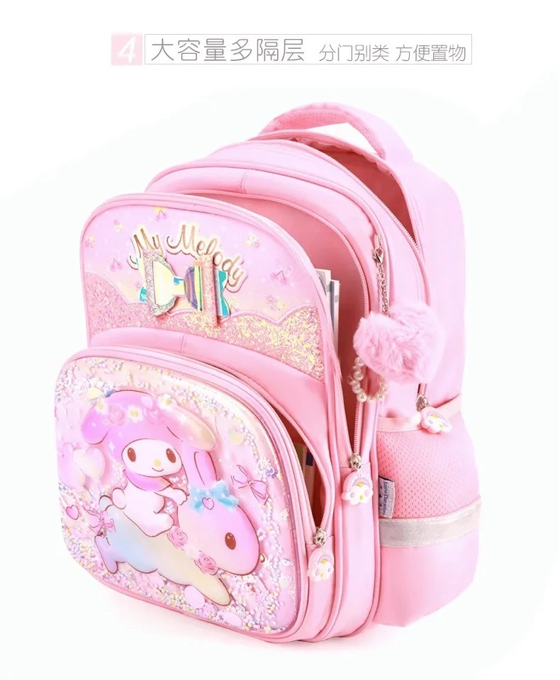 Sanrio Cute Kuromi Melody Cinnamoroll Large Capacity Backpack Boys Girls Cartoon Hello Kitty Kawaii Canvas Schoolbag 2024 Cute 4 SALE