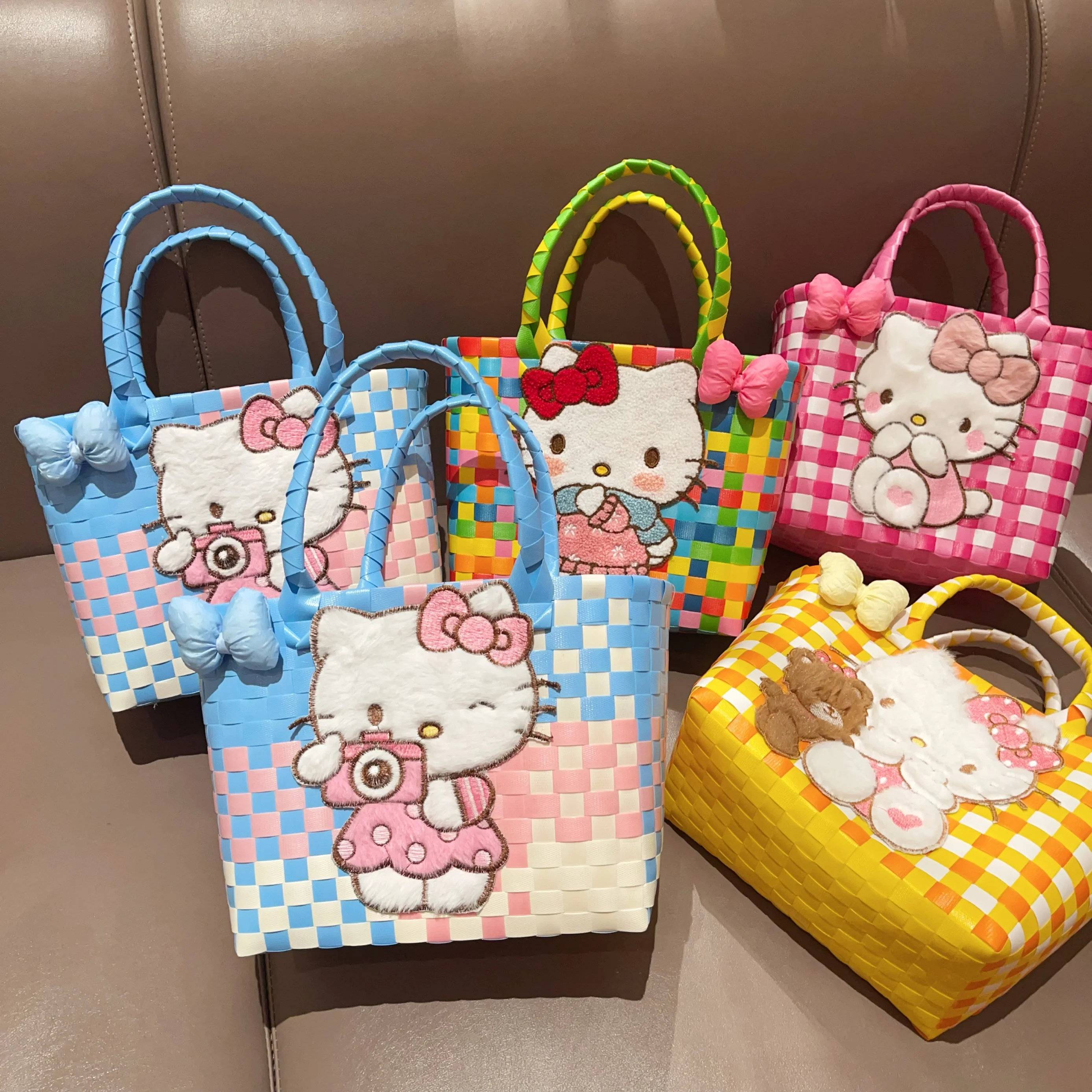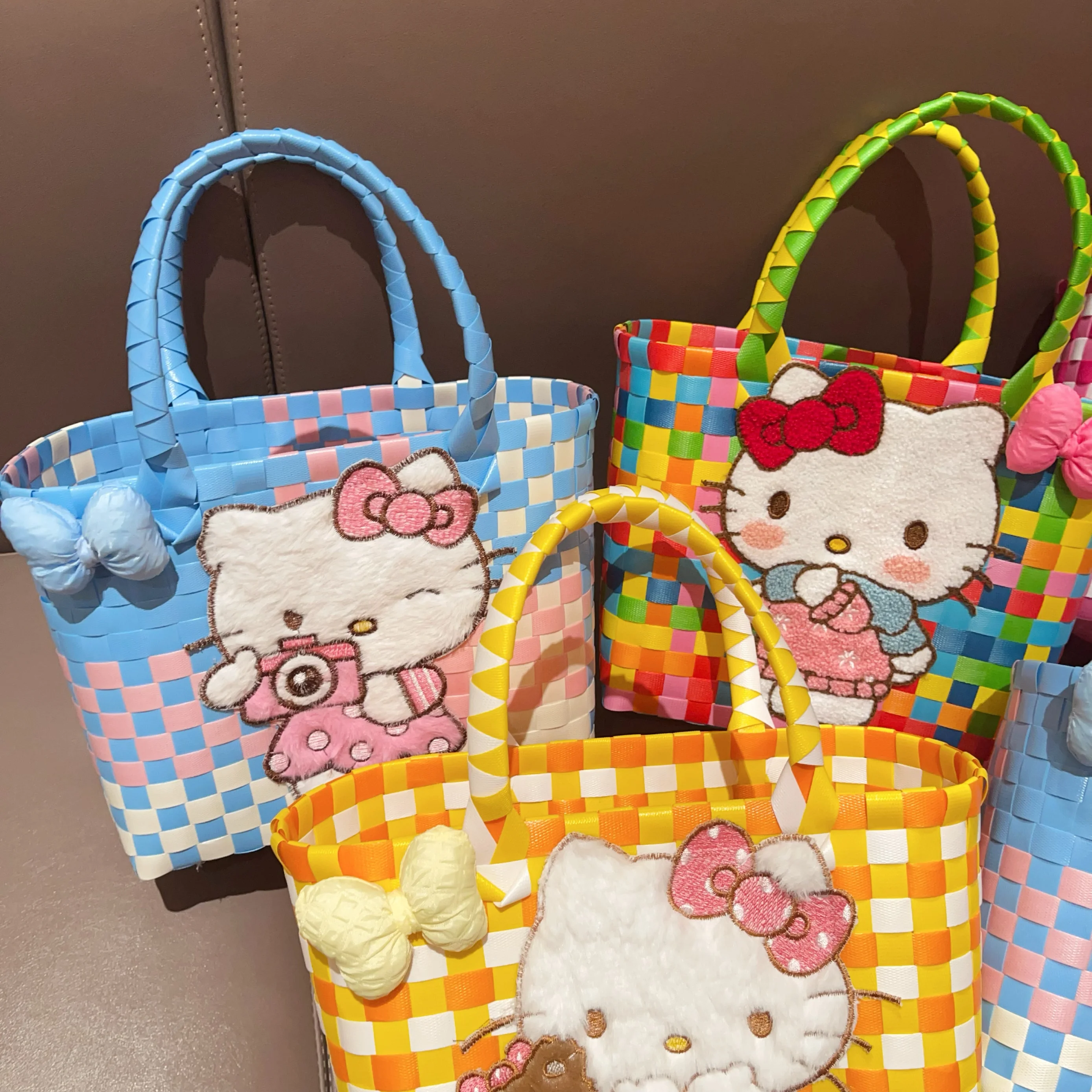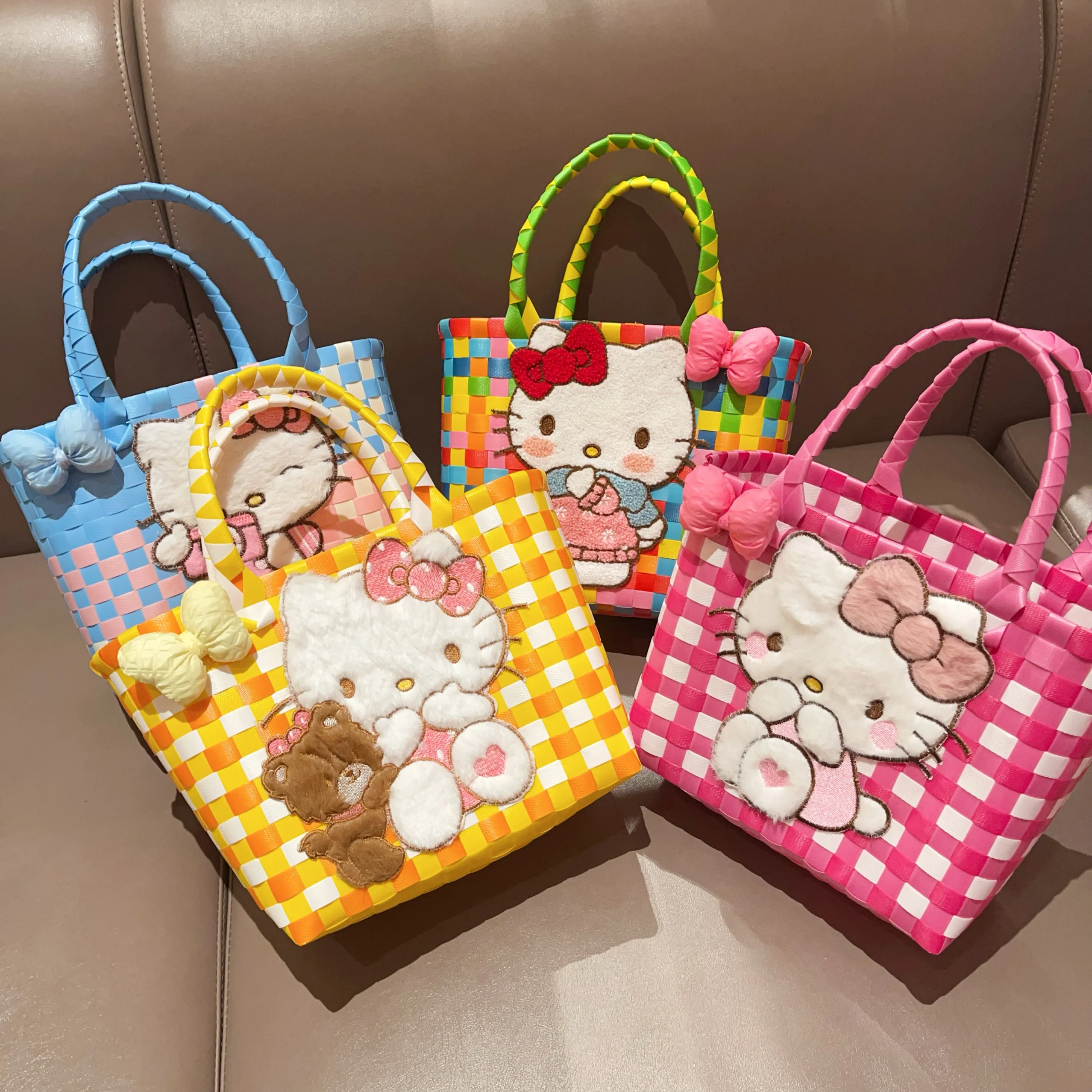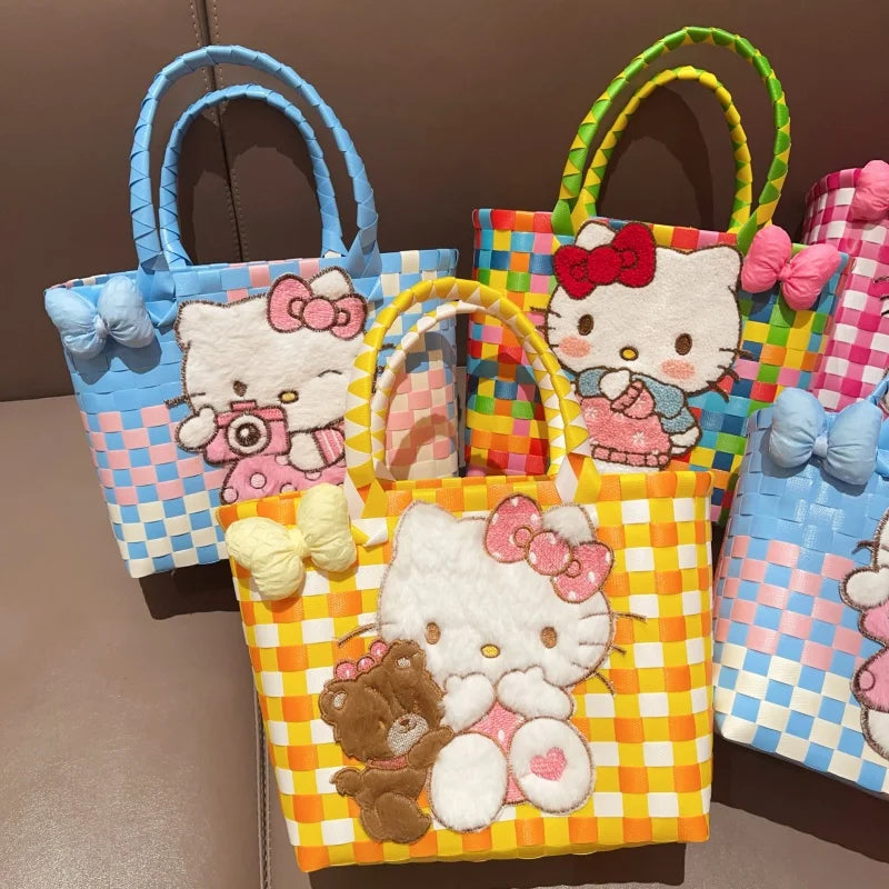 Sanrio Hello Kitty Handmade Limited Edition Sea Salt Blue College Style Kitty Cat Woven Bag For Girls Y2k Handbag Periphery