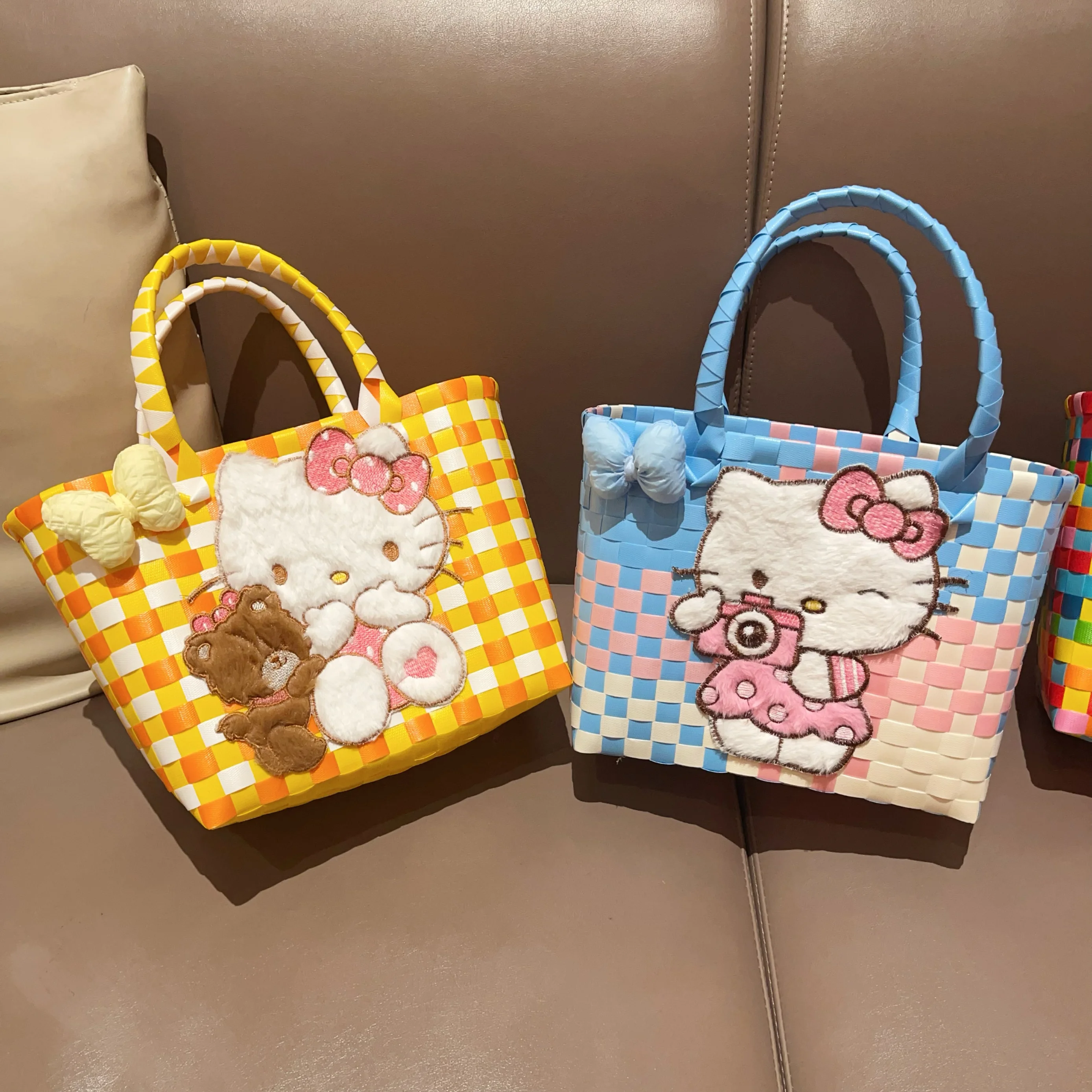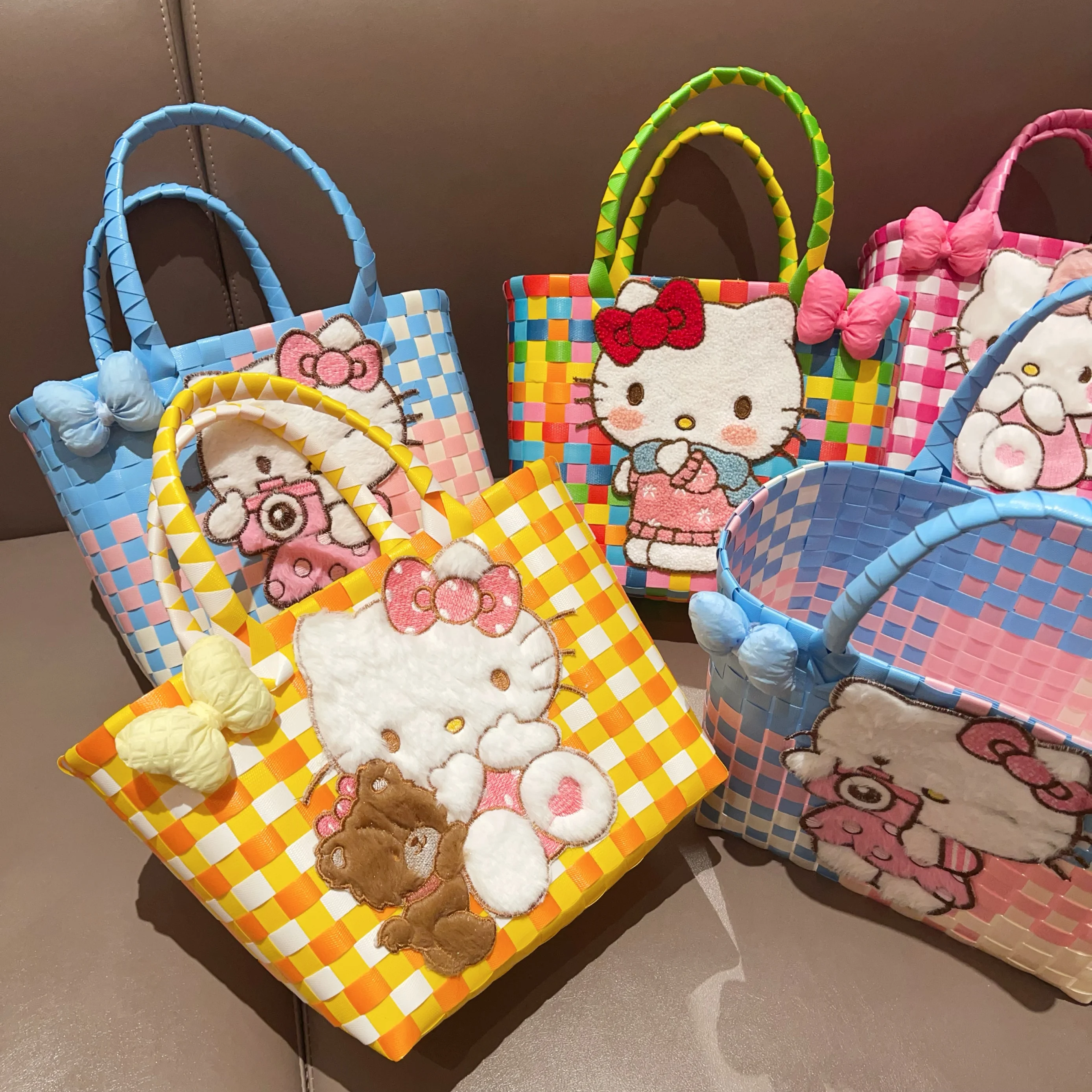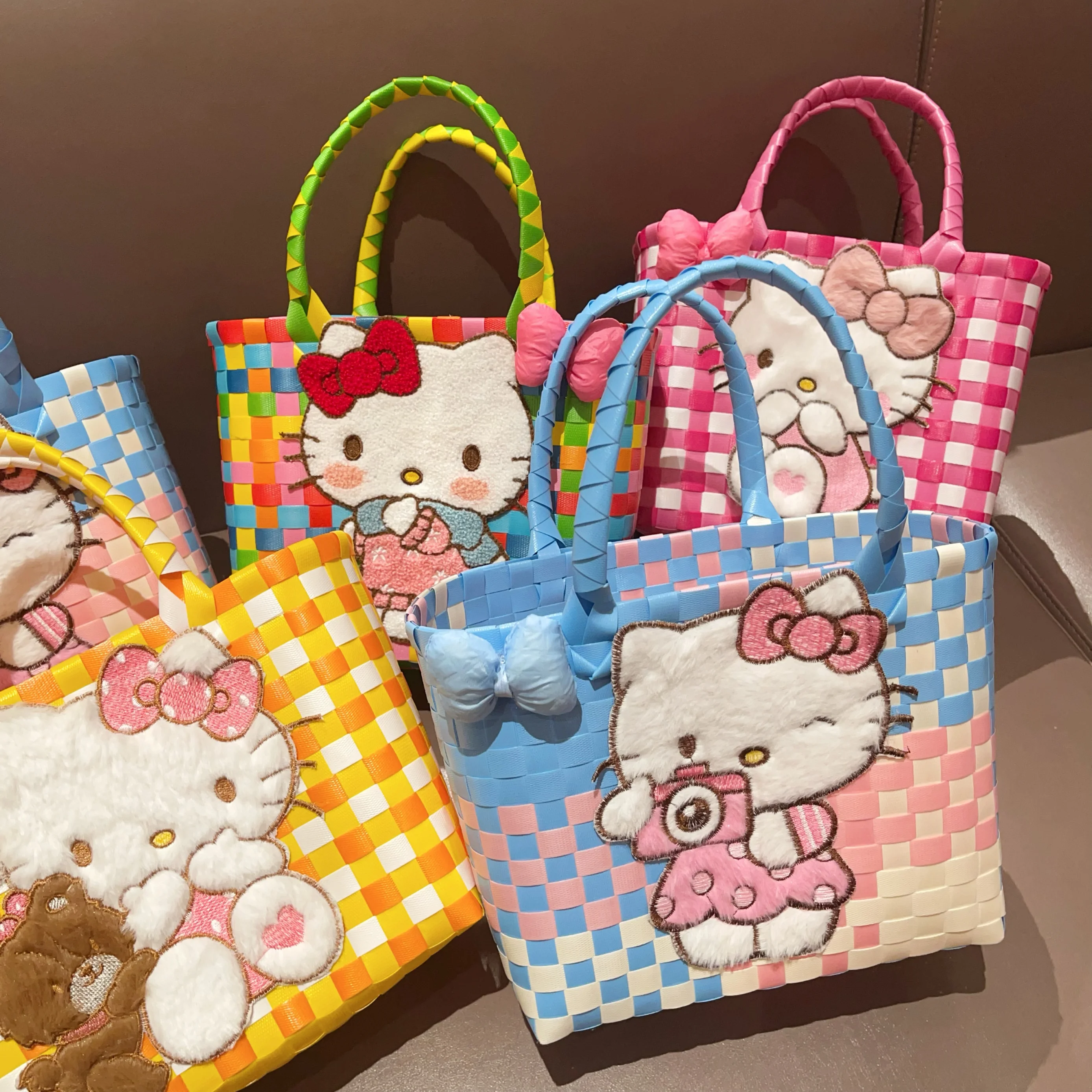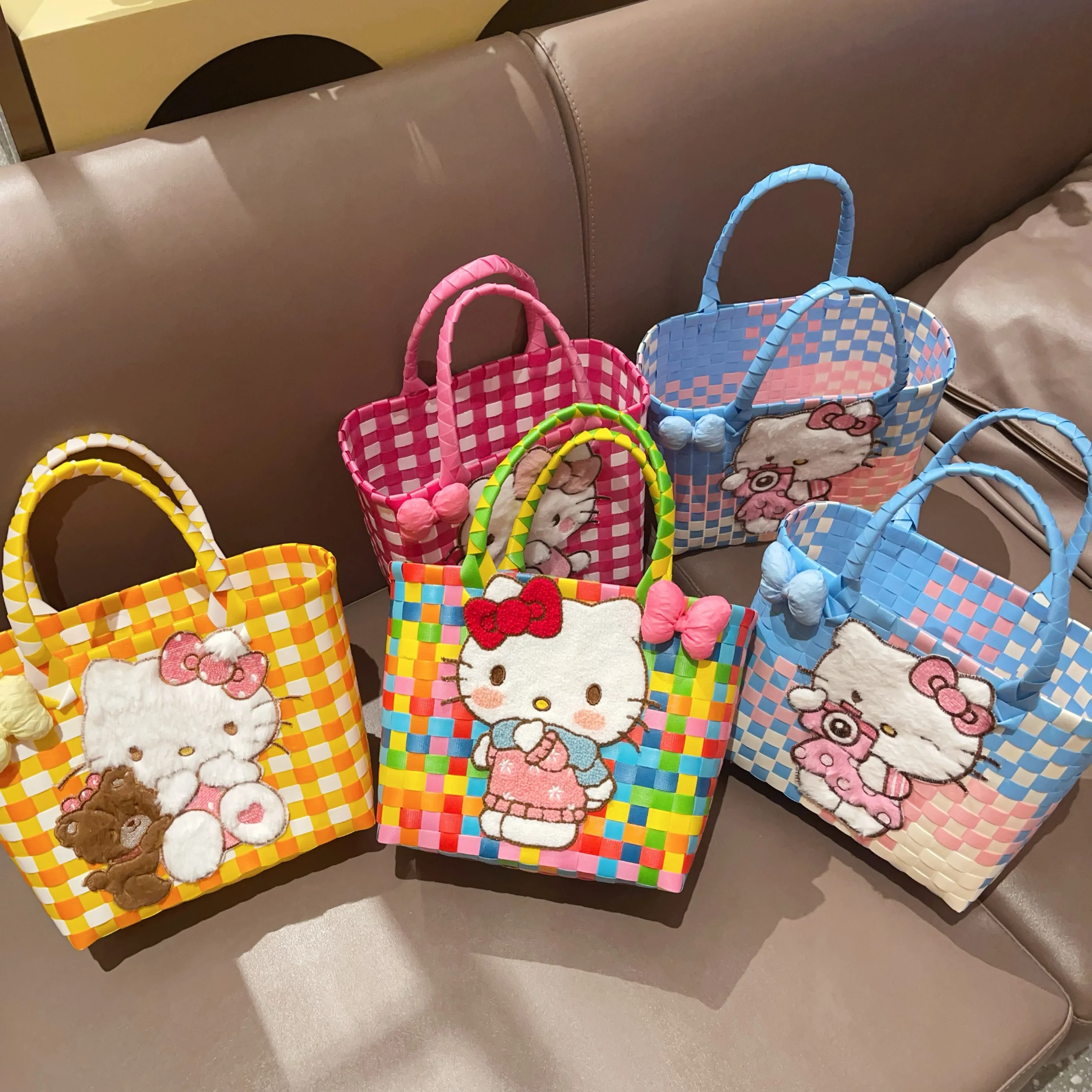 Sanrio Hello Kitty Handmade Limited Edition Sea Salt Blue College Style Kitty Cat Woven Bag For Girls Y2k Handbag Periphery