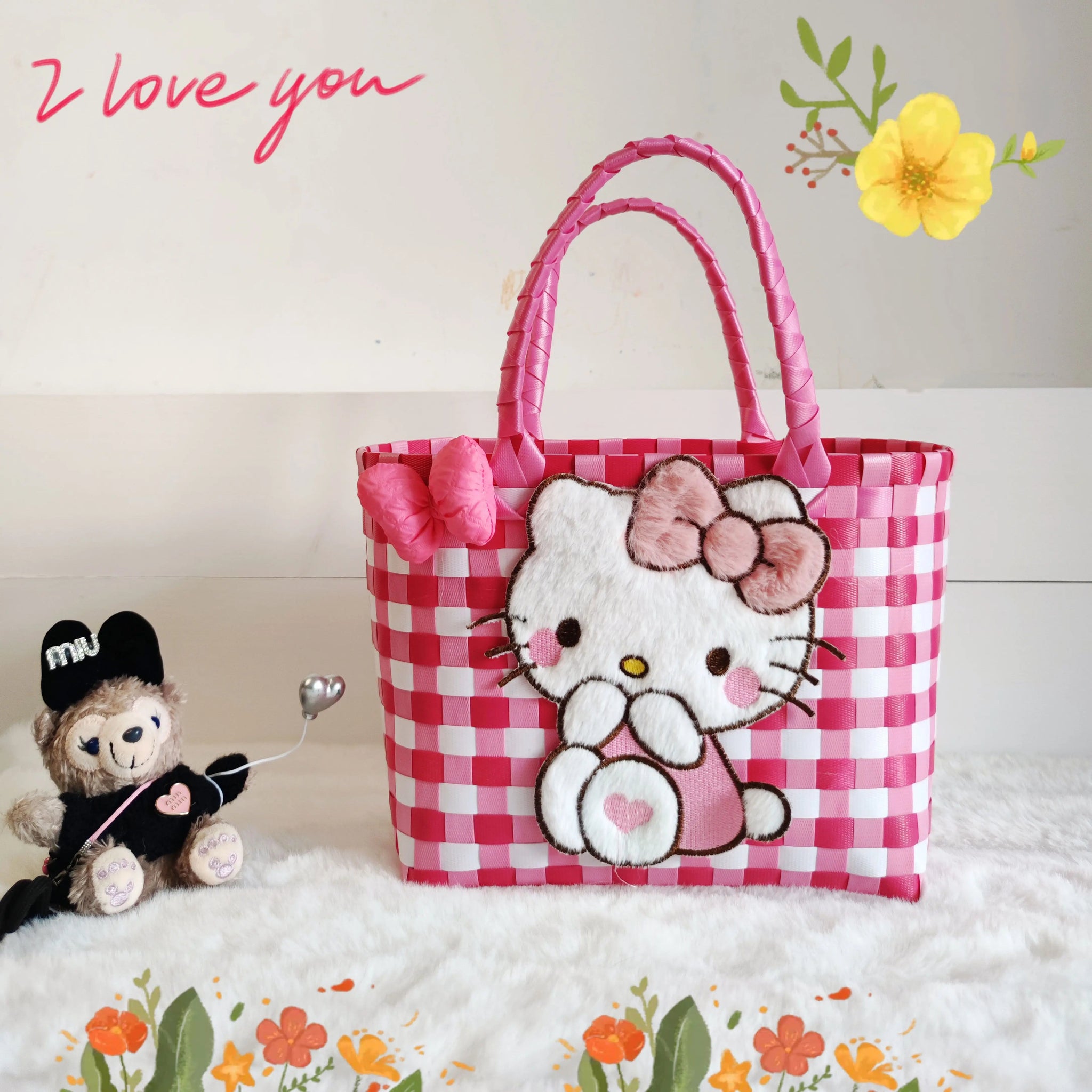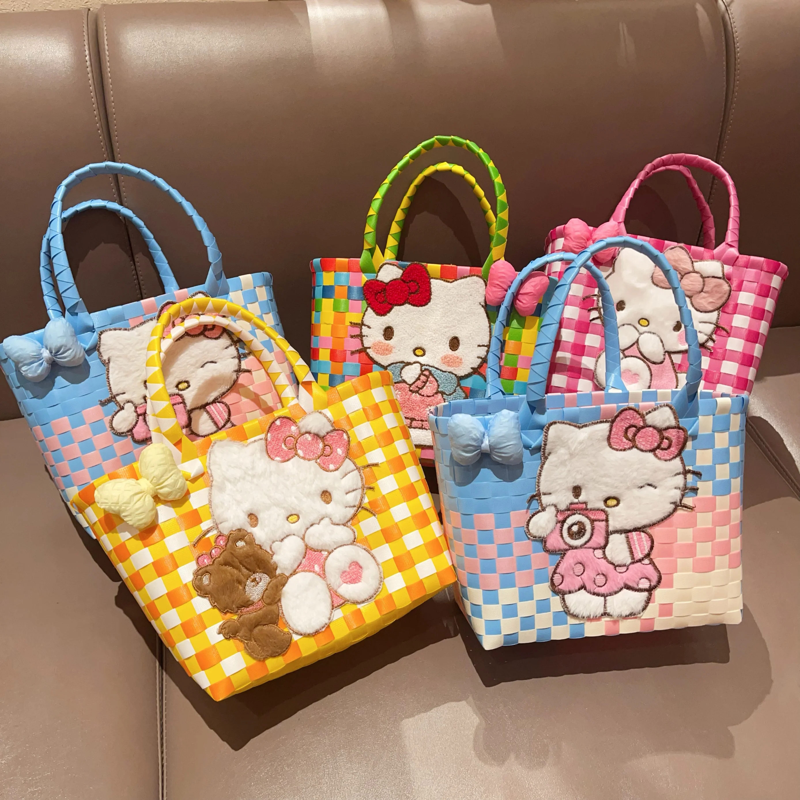 Sanrio Hello Kitty Handmade Limited Edition Sea Salt Blue College Style Kitty Cat Woven Bag For Girls Y2k Handbag Periphery E SALE