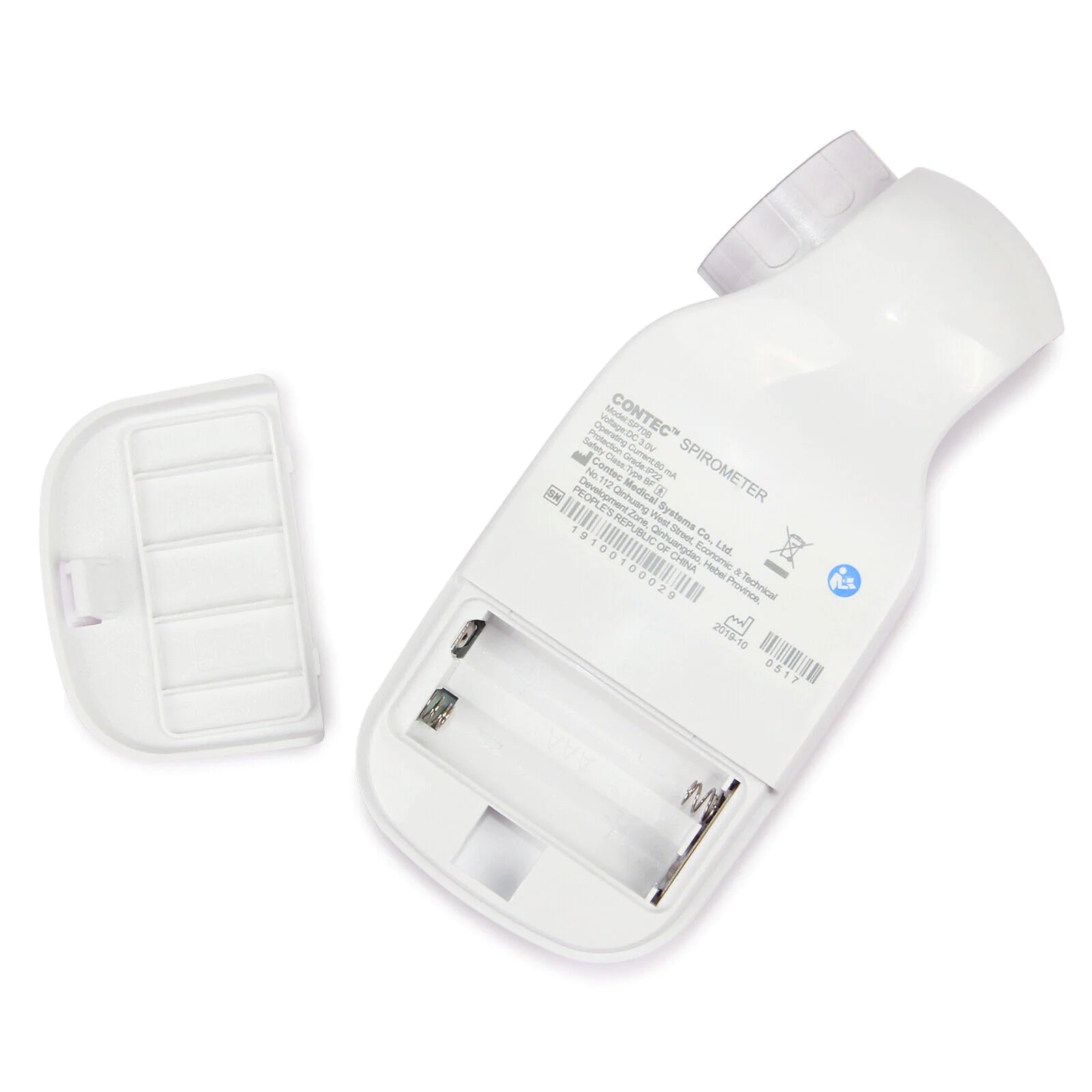 Included with the SPIROMETER are a user manual and a disposable mouthpiece for hygienic use. Its physical dimensions are 138 mm in length, 63 mm in width, and 47 mm in height, with a total weight of 150 grams, including batteries. This combination of features makes the SPIROMETER a reliable and convenient tool for lung health monitoring.