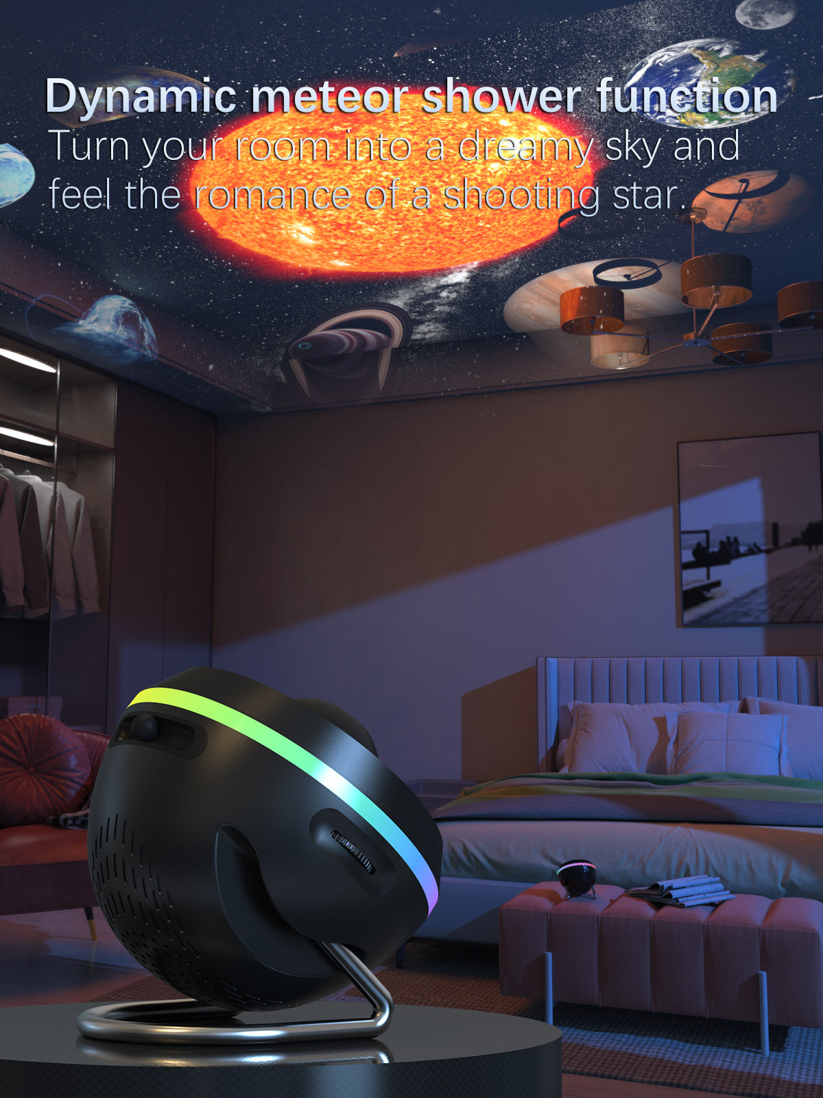 Elevate your space with the Space Ball Meteor 5 - 13-in-1 Galaxy Night Light Projector. Designed by Rusoso, this starry galaxy projector delivers 13 enchanting projection effects, ideal for kids’ Christmas and Halloween gifts. Featuring 360° rotation, a silent design, and timed operation, it’s perfect for bedrooms, parties, or game rooms. Create a celestial experience with this versatile starry night light that blends fun and tranquility effortlessly.