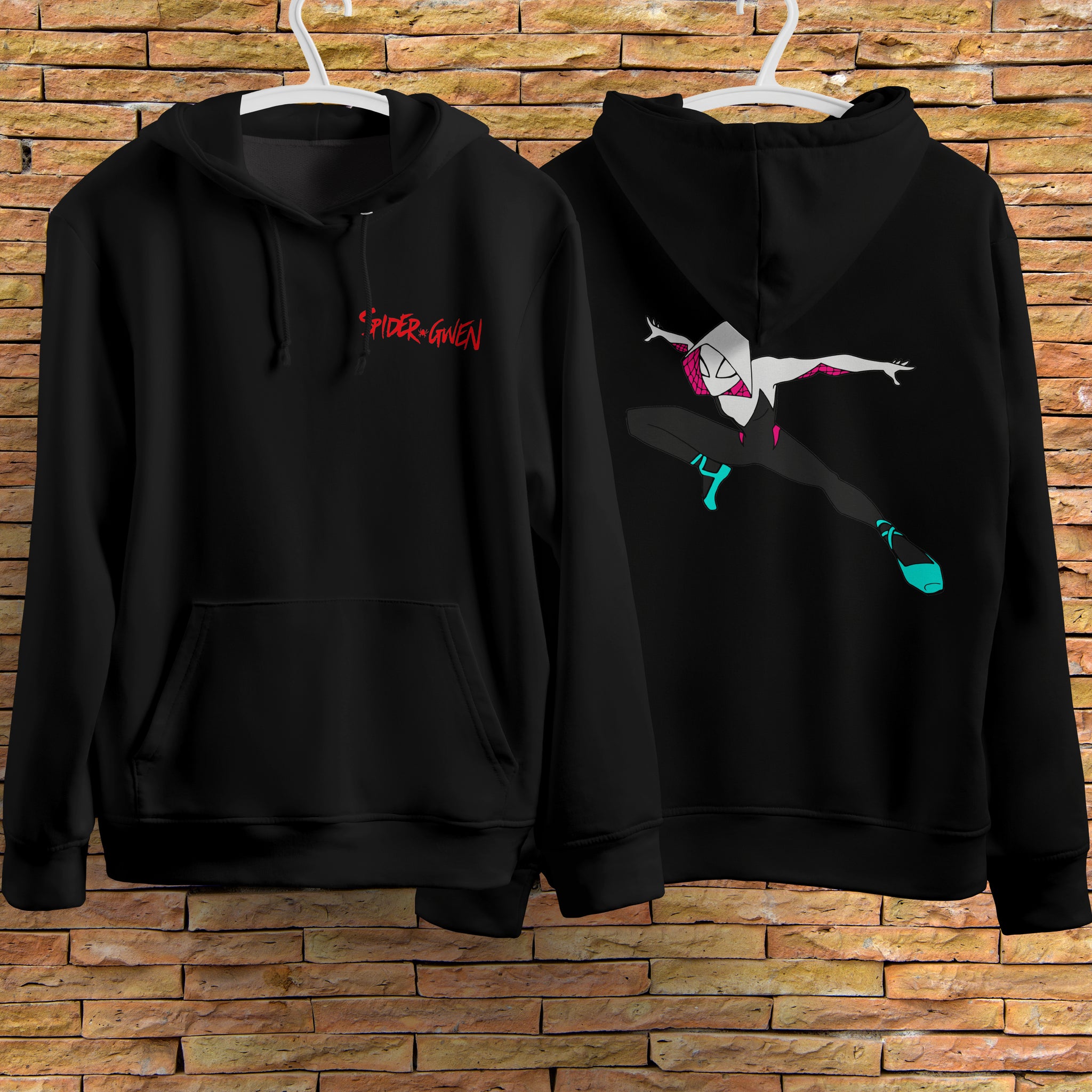 This cool black hoodie features a design inspired by Spider Gwen. The long sleeves and hood make it perfect for casual wear, while the personality and streetwear elements add a touch of personality to your outfit.