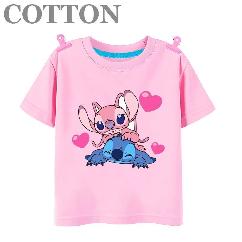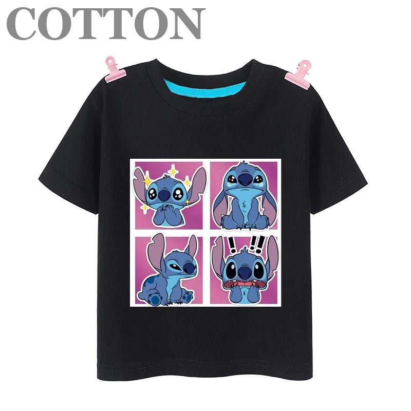The Stitch Anime Summer Cotton Kids T-shirt offers a comfortable and casual style with short sleeves and a round neck design. Made of high-quality cotton material, it provides a soft and breathable fit for your child. Perfect for summer days and everyday wear.